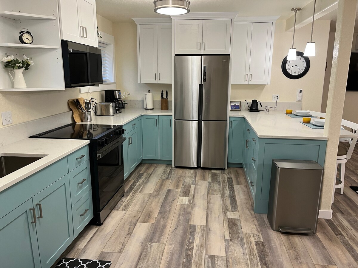 Svetlo i prostrano potkrovlje sa otvorenim dnevnim boravkom/trpezarijom i kuhinjom. Veliki, udobni kaučevi postavljeni ispred toplog i udobnog gasnog kamina i Smart TV-a. Pripremite obrok u prostranoj kuhinji sa svim novim uređajima i ormarićima. Sve novo posuđe, posuđe i pribor za jelo. Uživajte u kafi na terasi iz Keuriga. Ima 2 spavaće sobe sa bračnim krevetima i otvorenim potkrovljem na vrhu spiralnog stepeništa sa bračnim krevetom. Odlično mesto za uživanje u porodici i prijateljima.