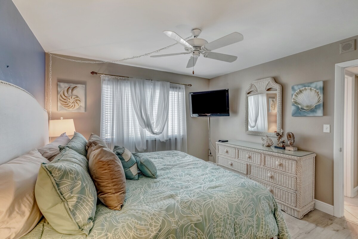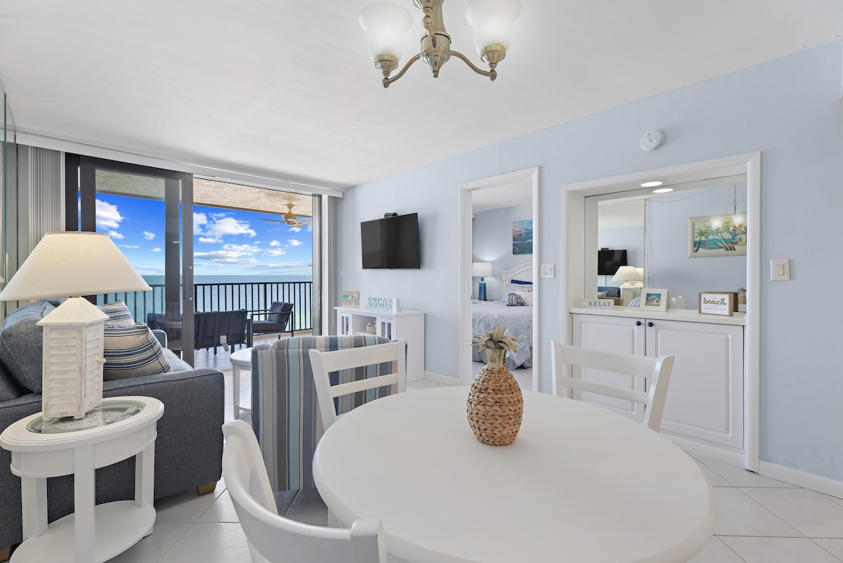 Paradise Found! At this ★5.0★ Luxe 2BR Condo with Stunning Beach Views, enjoy: - Pogled na okean iz svake prostorije - Pametni televizori u svakoj spavaćoj sobi - Potpuno opremljena kuhinja - Besplatan kafić – nedavno renoviran zajednički bazen sa sistemom za grejanje – Tereni za piklbol, boćanje, tenis, mini golf -Teretana - Šetnja do plaže (uključena su kolica za plažu, stolice i suncobrani) - Privatni balkon s pogledom na Marko Bič Nekoliko minuta do hotela JW Marriott, plaža Tigertrail i Marco, kao i mnogih restorana, kafića i svega najboljeg na ostrvu Marko