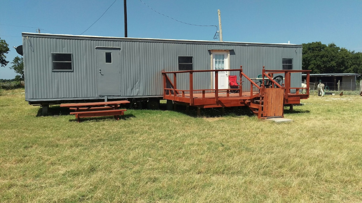 Naš mali prostor ima ulaz na daljinu i vaš trijem za sedenje i uživanje u zalasku sunca. Otprilike 550 kvadratnih stopa sa mnogo sadržaja. Bračni krevet je bračni krevet i može se preklopiti kako bi vam pružio više prostora. Tu je i krevet na razvlačenje, sva posteljina je obezbijeđena. Ovaj tip kreveta je najbolji za dijete, tinejdžere ili malu odraslu osobu. Imamo alpaku, emu, koze, piliće, patke, ćurke, pse i mačke. Prostor ima frižider, mikrotalasnu rernu, toster, lonac, blender, sudoperu, posuđe.