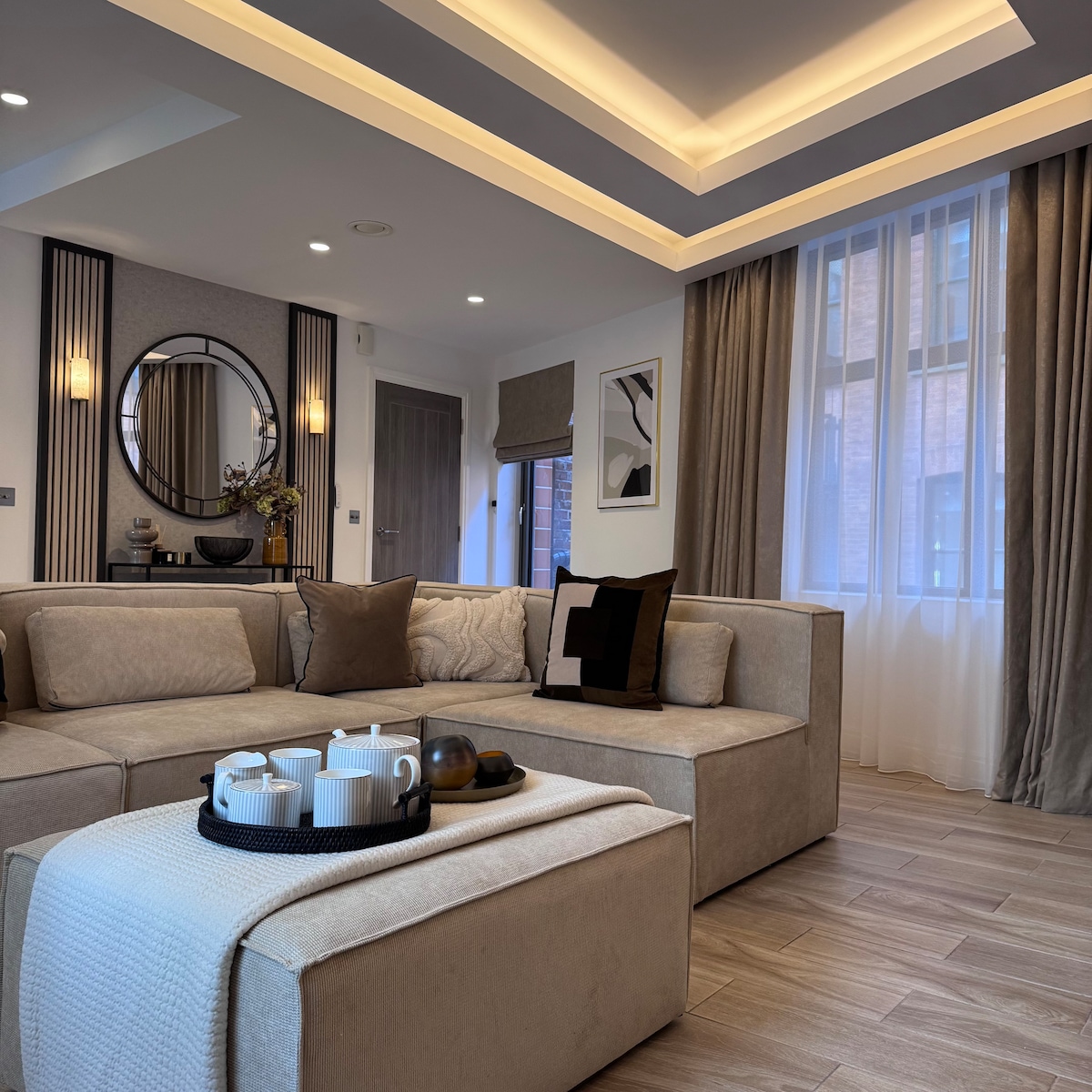 Ovaj Executive apartman sa 5 ★ ima sve što vam treba da se osjećate potpuno kao kod kuće tokom boravka. Pažljivo dizajniran uz vrhunske moderne detalje i elegantan namještaj, ovaj prostor predstavlja mirno utočište u srcu grada. Veliki prozori i pažljivo uređeni enterijeri stvaraju mirnu i prijatnu atmosferu, savršenu za opuštanje nakon napornog dana provedenog u istraživanju Mančestera ili radu u blizini.