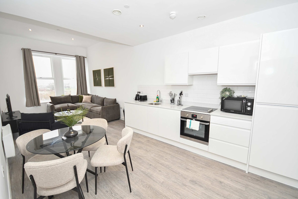 Uživajte u udobnosti hotelskog stila u ovom luksuznom apartmanu sa 2 kreveta i 2 kupatila, na nekoliko minuta od stanice Mančester Viktorija i AO Arene. Dizajniran za vikende na koncertima i šik gradske izlete, ima svijetao dnevni boravak otvorenog tipa, potpuno opremljenu kuhinju i dvije mirne dvokrevetne spavaće sobe, od kojih jedna ima kupatilo. Uživajte u brzom Wi-Fi mreži, Smart TV-u, mašini za pranje/sušenje veša, stolu za bilijar i jednostavnoj samostalnoj prijavi, sa barovima, restoranima i prodavnicama na vašem pragu.