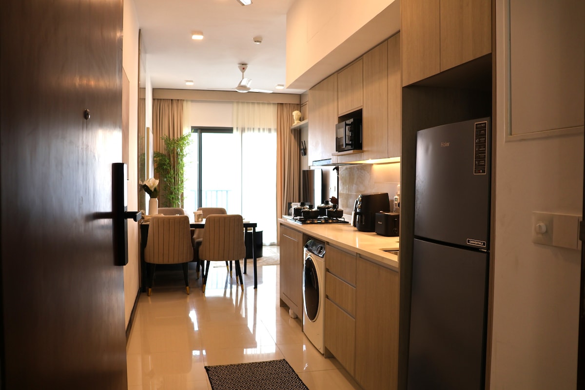 Dobro došli u Abeys Sky Residence u Tri-Zenu, koji nudi zadivljujući pogled na toranj Lotus u srcu Kolomba 02. Ovaj moderan jednosobni stan ima bračni krevet, udoban kauč na razvlačenje, potpuno klimatizovan dnevni boravak, opremljenu kuhinju, kupatilo sa toplom vodom i vešernicu. Gosti takođe imaju pristup bazenu, teretani, dječjem prostoru za igru i krovnom prostoru za zajednički rad. Nekoliko koraka od prodavnica, restorana i prevoza, idealno za poslovne i turističke boravke.