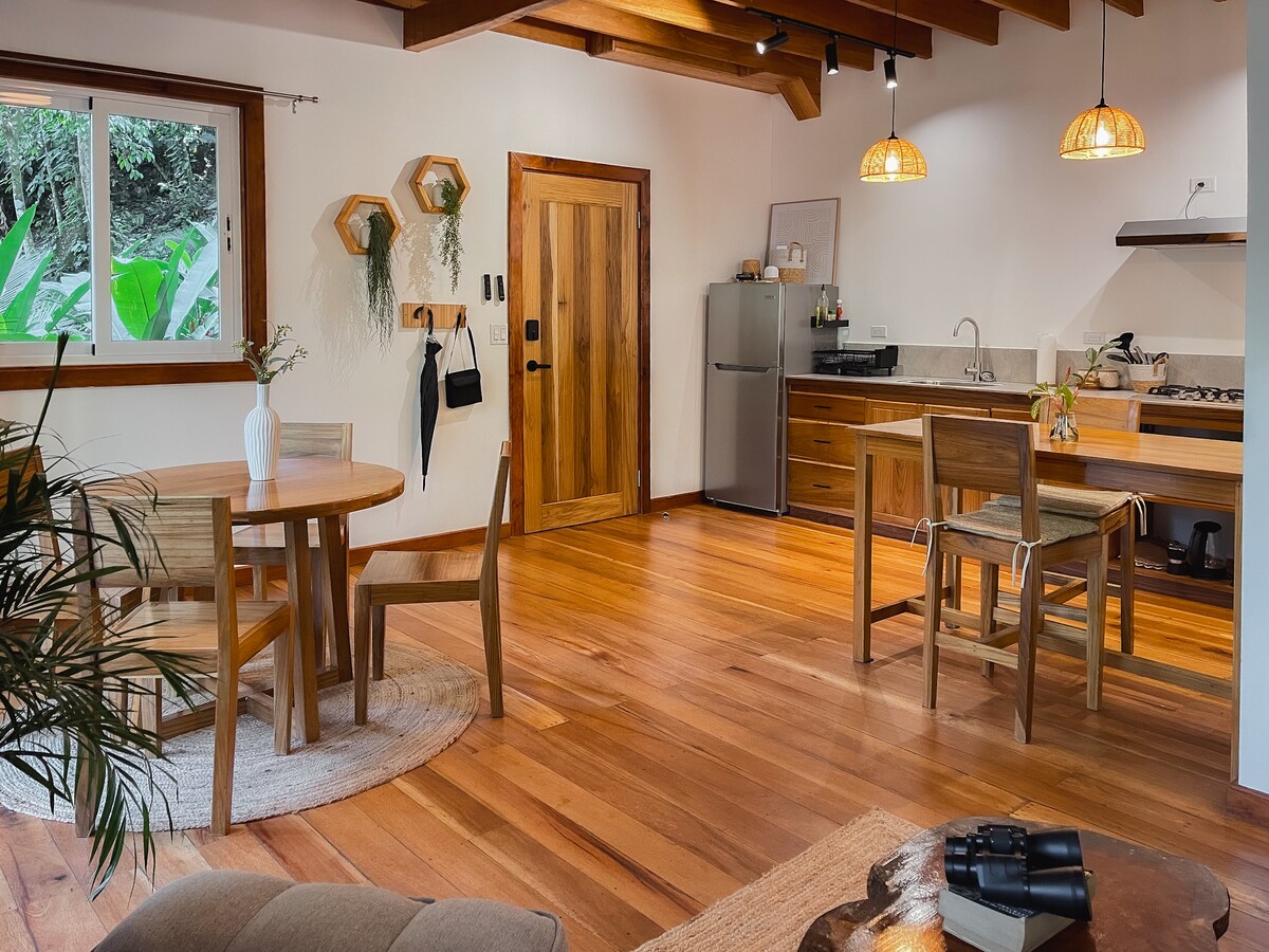 Savršen za parove ili male porodice, ovaj privatni apartman na ostrvu Kolon nudi modernu udobnost na samo nekoliko minuta hoda od grada Bokas. Uživajte u bračnom krevetu, kauču na razvlačenje za trećeg gosta, osvježavajućem bazenu i tropskim vrtovima. Kuvajte u potpuno opremljenoj kuhinji ili koristite roštilj na otvorenom. Naše osoblje može da priprema obroke na zahtjev. Mirno, ograđeno i blizu restorana i plaža, idealno je mjesto za zajednički odmor u Bokas del Toru.