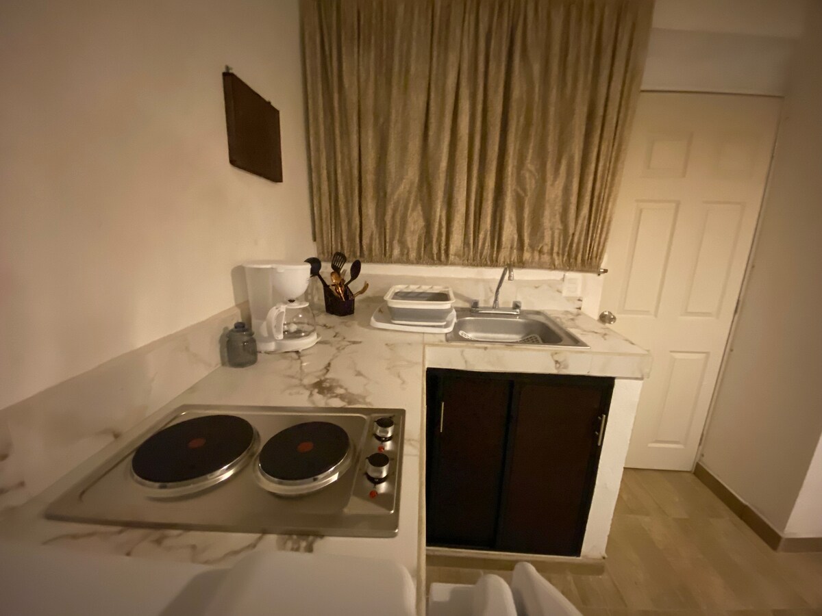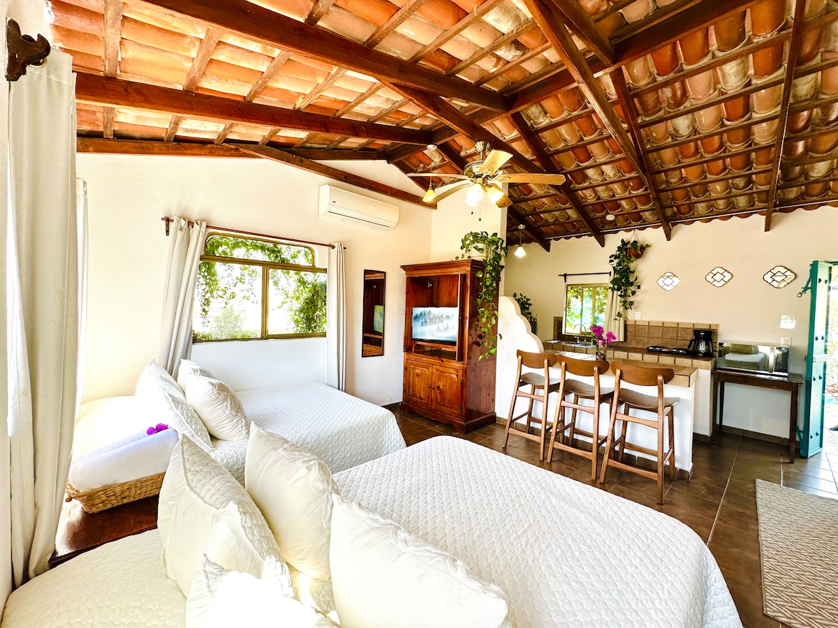 ✨ Spacious ground-level apartment (220 sq ft) set in a lush tropical garden with over 40 fruit trees! Ideally located in the heart of downtown Cabo! Shops, restaurants and nightlife are all nearby! 5-min. walk to the marina and 15 min. walk to the beach 🏝️ ✅ Memory-foam mattress and blackout curtains for great sleep ✅ FREE private parking ✅ Private bathroom with amenities ✅ Private kitchen with appliances ✅ Complimentary coffee & tea ✅ TV featuring Netflix & YouTube ✅ In room safe