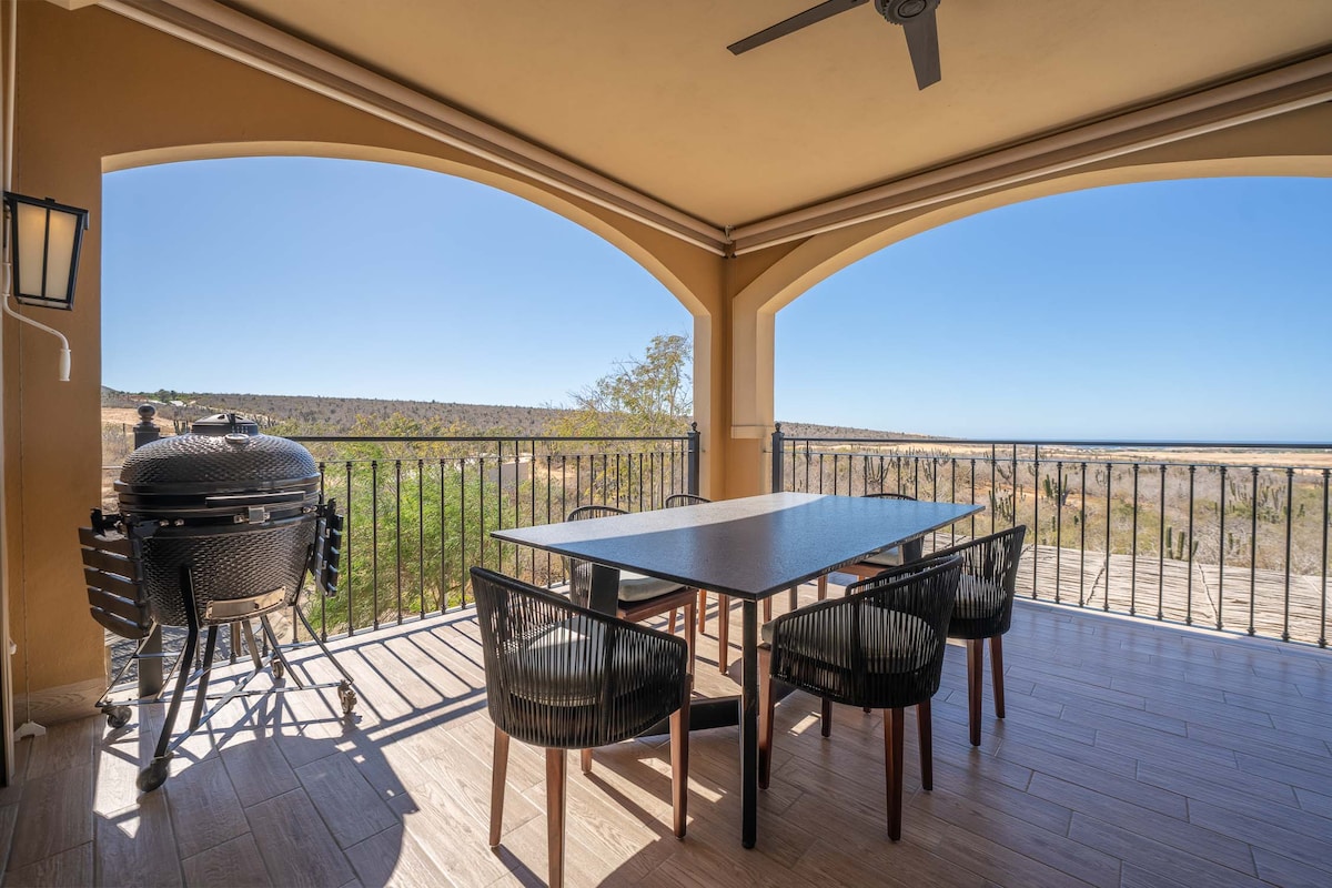The condo's 180º view lets you enjoy sunrise and sunset at the Cabo Arch from your breakfast-dinner table! Terrace design offers intimacy and escape. Ideal for a romantic stay, home office with paradise views, BBQ dinners with sunset vistas, relaxing hammock siestas, whale-watching while cooking, and sunrise views from bed! Walking access to Cabo's top two beaches and next to The Cape and Thompson Hotel. Please remember, this is a rental condo, not a hotel, and the price reflects that.