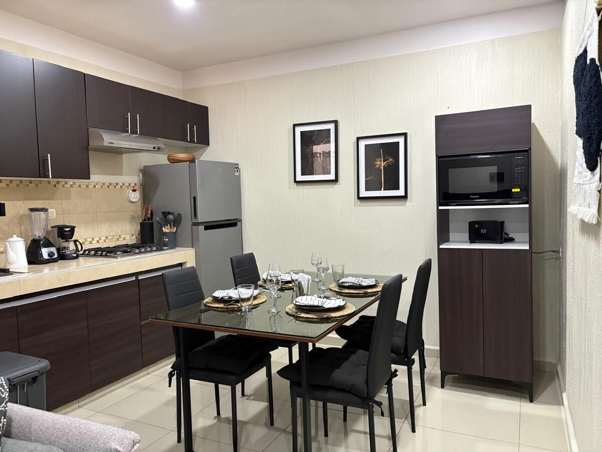 Opustite se u ovom mirnom i elegantnom prostoru.com ili ako ste bili kod kuće robne kuće 5mim automobilom Aurrirá,Sams,Walmart,KFC,bolnica 2 minute automobilom i odbijanje bi bilo udaljeno nekoliko koraka, topla voda, mašina za pranje veša, rudnici u 10 minuta Obrok ispred ,prostor za kafu idealan za preduzeća za duge i kratke boravke