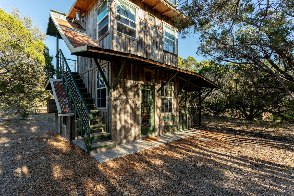 Istražite prostrani pogled na Teksas Hil Kantri. Ova ručno izgrađena, jedinstvena kuća na drvetu smještena je na 37 šumovitih hektara. Zahvaljujući svom jedinstvenom dizajnu i elegantnom enterijeru, planinarskoj stazi dužine oko 800 metara, visećim ležaljkama i natkrivenom trijemu, ova kuća na drvetu vas poziva da se opustite, odmorite i napunite baterije u prirodi. Ovdje nećete biti okruženi drugim Airbnb smještajima. Rezervišite jednu ili dvije noći i uživajte u miru. (Pokriveno spoljašnje stepenište vodi vas od kuhinje/kupatila u prizemlju do spavaće sobe na 2. spratu.)