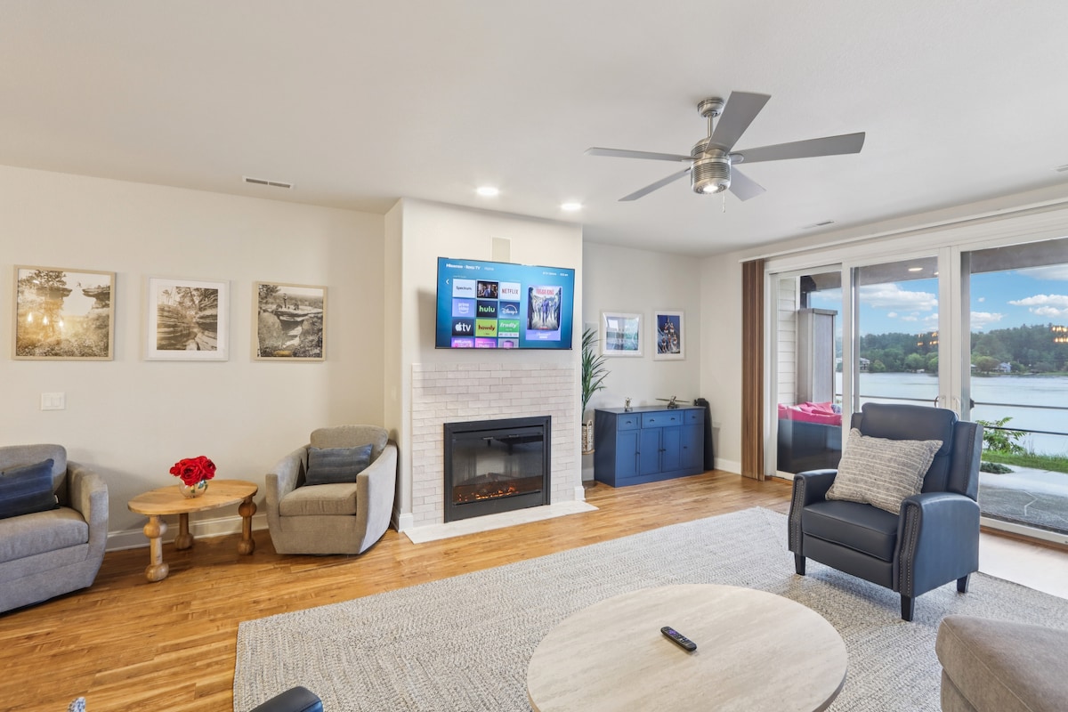 Doživite život na jezeru u našem luksuznom stanu uz jezero. Probudite se uz jutarnju kafu na balkonu sa pogledom na jezero Delton koji oduzima dah. Naš prostrani kondominijum sa 2 spavaće sobe i 2 kupatila ima prekrasan glavni apartman sa bračnim krevetom, sopstveno kupatilo sa hidromasažnom kadom i tuš kabinom sa 3 glave za tuširanje. To je savršen odmor za one koji žele da se osećaju kao da su daleko od sveta, ali su takođe udaljeni nekoliko minuta od zabave i uzbuđenja Della.