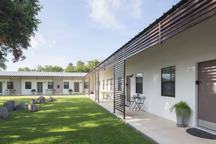 Samo nekoliko koraka od Vimberli Skvera, Beer Ranch Inn je savršeno odredište za vaš boravak na selu u Teksasu. Beer Ranch Project Studio #1 sadrži luksuzni bračni krevet od memorijske pene, prostrano kupatilo i sve što vam je potrebno, uključujući brzi WI-FI, TV, bar sa doručkom sa mikrotalasnom rernom, mini-frižider, kafu, čaj i još mnogo toga. Opustite se uz šolju kafe u sobi ili se opustite uz hladno pivo na terasi.
