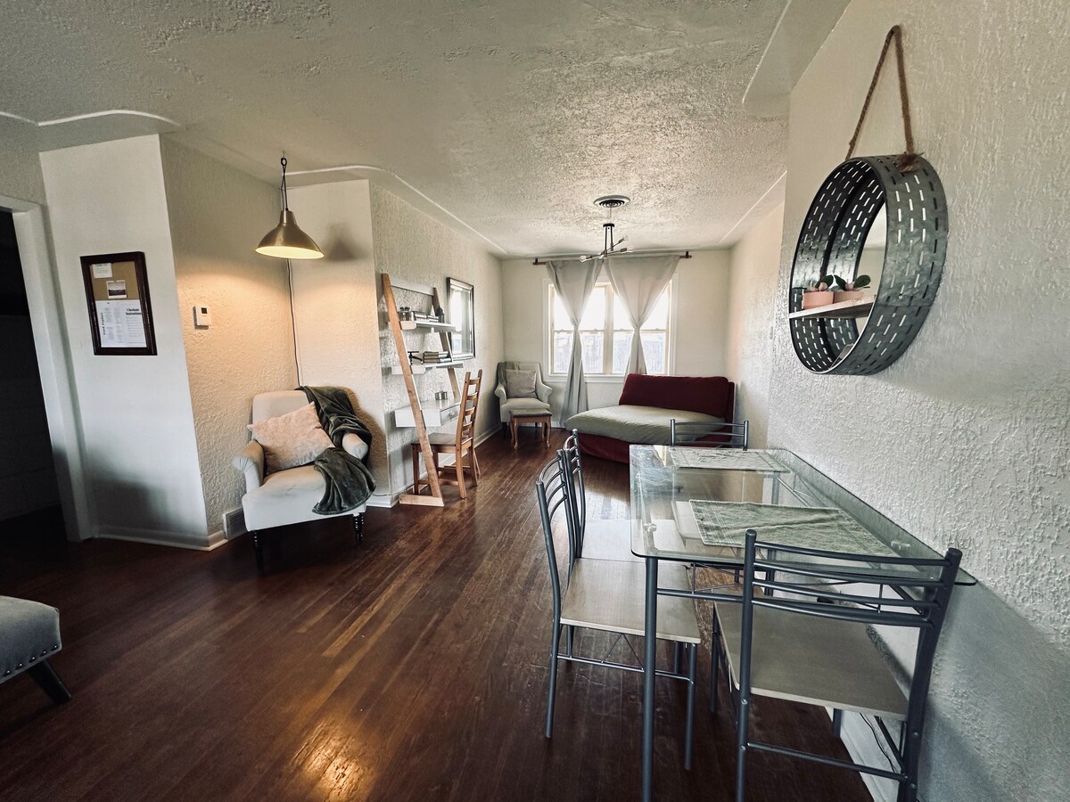 Smješten među The Wichita Wildlife Refuge i Downtown Medicine Park, ovaj POTPUNO NOVI mirni smještaj ima privatnu unutrašnju hidromasažnu kadu/bazen, privatnu saunu, teretanu, 2 spavaće sobe s bračnim krevetima, 2 kupatila s tuševima i balkon s pogledom na planine. Treba vam više prostora? Smještaj 8 tako što ćete rezervisati Soak Haus Align u istom objektu. 5 minuta hoda do medicinskog parka u centru grada 6 minuta vožnje do jezera Lotonka 6 minuta vožnje do planina Vičita 15 minuta vožnje do Fort Sila 20 minuta vožnje do Lotona