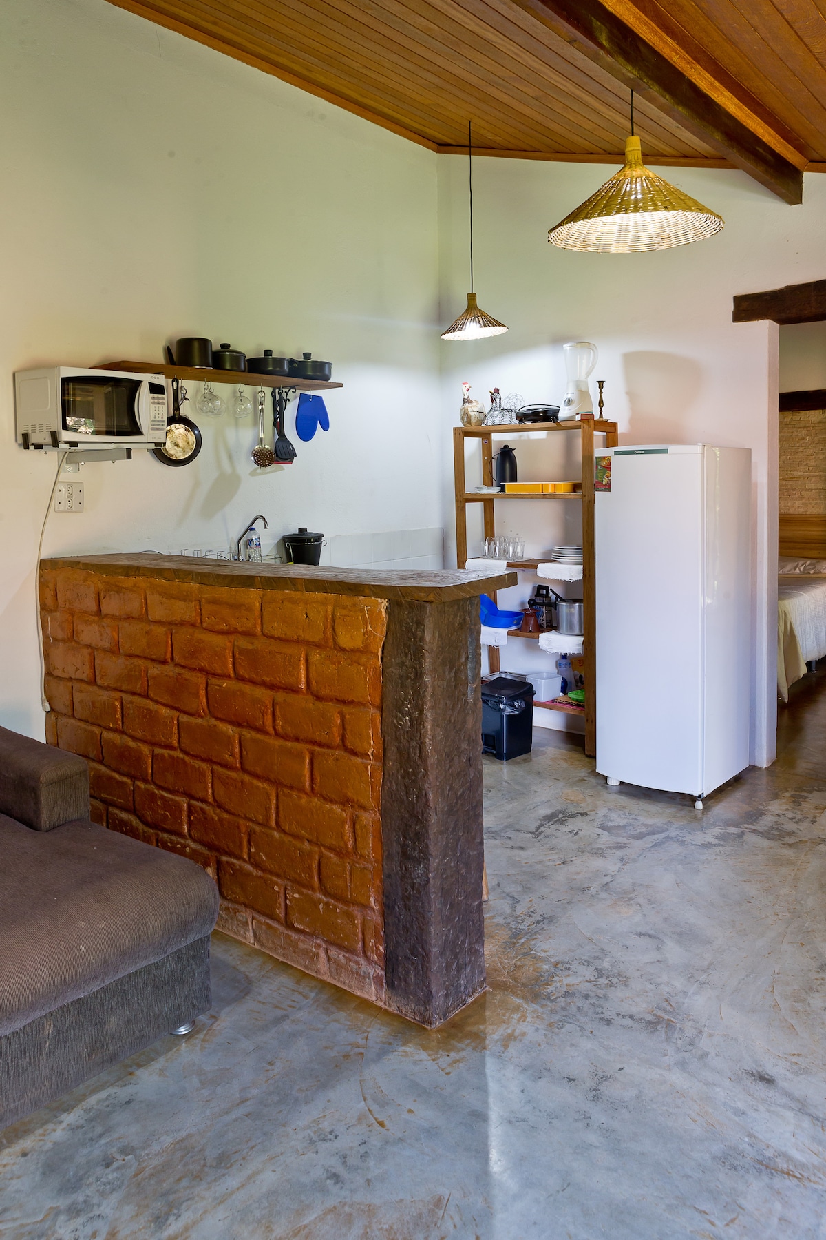 Acomoda até 2 pessoas e não é pet friendly! Eleger a quantidade certa de pessoa no pedido de reserva. Se não haverá cobrança, mesmo sendo criança ou pet. Na propriedade tem dois chalés, esse é o do segundo pavimento. A área externa do gramado pode ser compartilhada com outros hóspedes. Não possui televisão. É um convite para se desligar dos hábitos urbanos e se conectar à natureza.