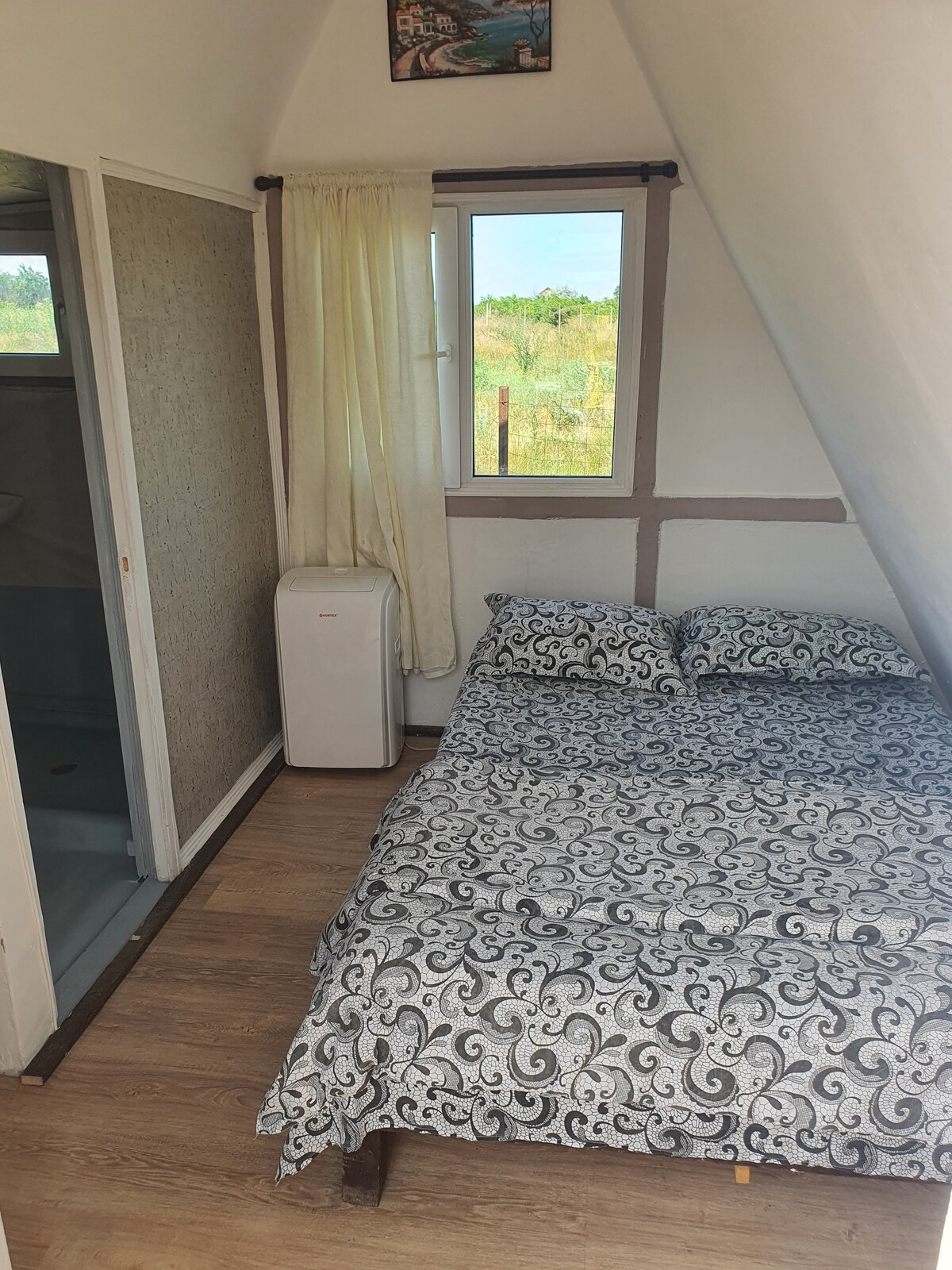 Pura Vida Seaside Tiny house village is located steps away from the beach of Vama Veche and consists of more than 20 tiny houses, modular homes and premium glamping tents. Kao sadržaji imamo roštilj, jacuzzi uz naknadu, besplatan parking za naše klijente, bežični internet u nekim područjima, besplatno igralište za djecu, vlasnike koji su vrlo prikladni za kućne ljubimce i centralna lokacija. Kuća Vudi je veoma prostrana i nudi bračni krevet dimenzija 180 cm x 2 metra i kauč koji se može proširiti.