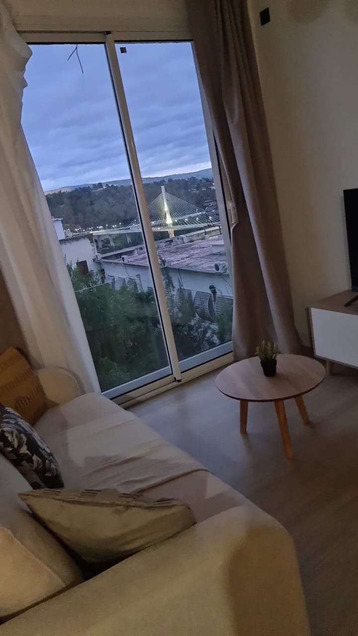 Appartement idéalement situé en plein cœur de Constantine, à deux pas des commerces, restaurants et sites touristiques. Profitez d’une vue panoramique exceptionnelle sur les ponts et l’ancienne ville. Niché dans une résidence très calme, ce logement allie confort et sérénité. Entièrement équipé et décoré avec goût, il est parfait pour un séjour agréable, que ce soit pour le tourisme ou les déplacements professionnels.