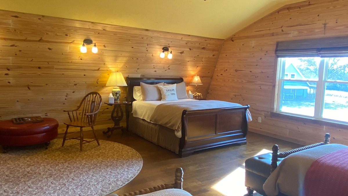 You won’t want to leave this charming, one-of-a-kind place. The Lubbock room is a ground-level room in our newly constructed Red Oak Lodge at our 24 acre retreat and event center. King bed, private bathroom. Breakfast included.