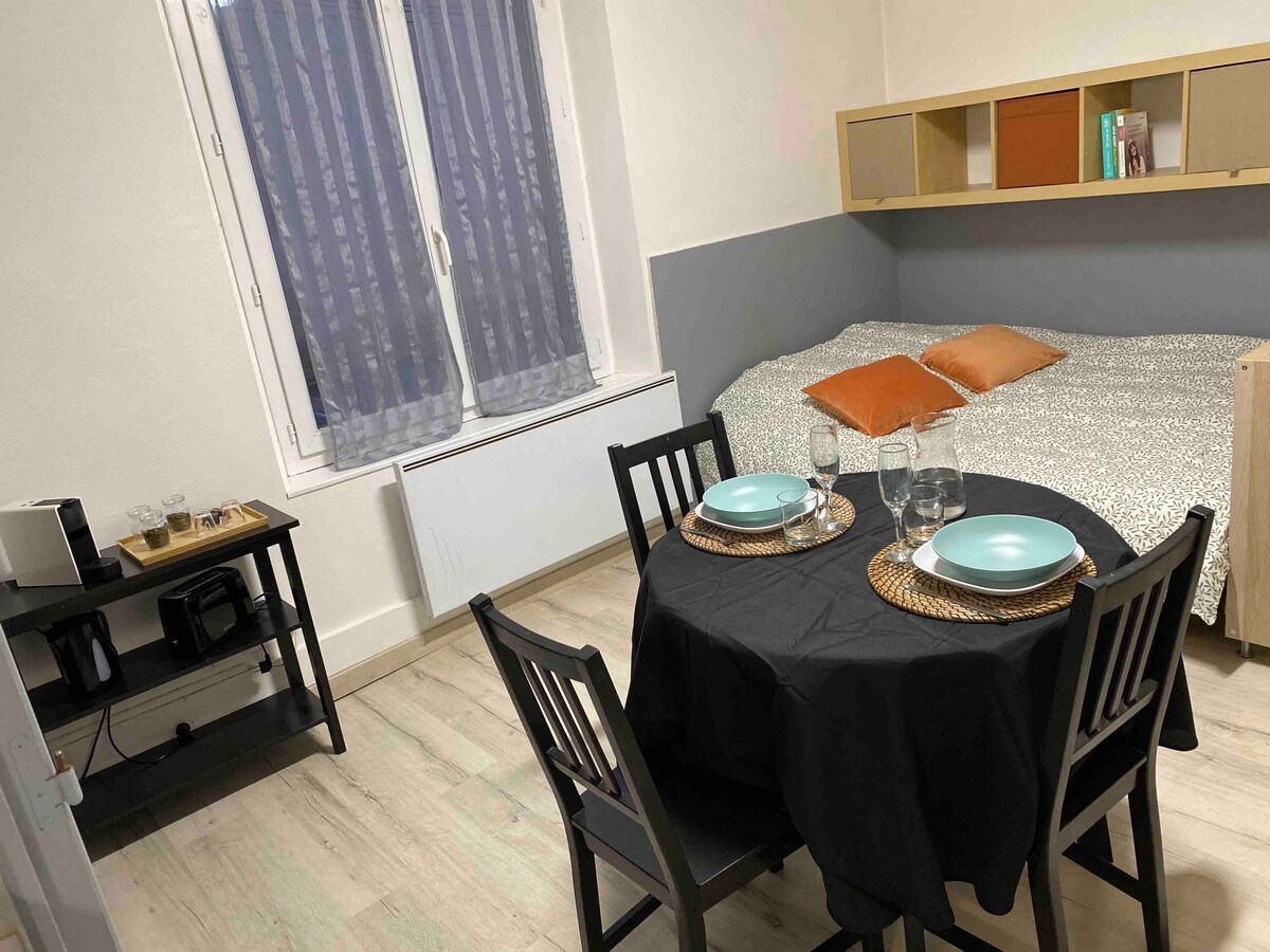 Stan od 50 m2, 2 spavaće sobe, jedna dvokrevetna i jedna jednokrevetna (jednooki sa nadstrešnicom). --- Klasifikovan „Meublé de Tourisme” by Gîtes de France (3 zvezdice)--- ---> Nalazi se na 2 minuta hoda od željezničke stanice i 10 minuta od centra grada. Besplatan parking. Potpuno opremljen i uredno uređen za boravak u čahuri!!! ! Novo!!!! EMMA HYBRID II dušek u dvokrevetnoj spavaćoj sobi Fleksibilna prijava i odjava zahvaljujući sefu za ključeve, ostaću vam na raspolaganju tokom boravka!