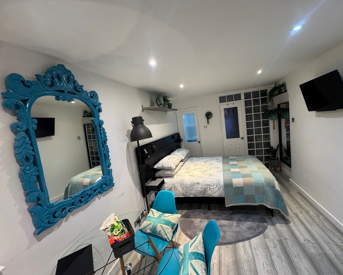 LUKSUZNI MODERNI STUDIO: prostrani studio sa besplatnim sigurnim parkingom. Novoizgrađen, Wi-Fi, potpuno grijan i izolovan za upotrebu tokom cijele godine. Studio se nalazi na pješačkoj udaljenosti od imanja Ešton Kort i nedaleko od Klifton Vilidža i centralnog Bristola. Dodatni bračni krevet je dostupan za dodatna 2 gosta; naknada od 60 £ po noćenju, koja se naplaćuje po dolasku. Navedite to domaćinu prilikom rezervisanja. NAPOMENA: ovaj studio apartman je zaseban stan u sklopu glavne porodične kuće.
