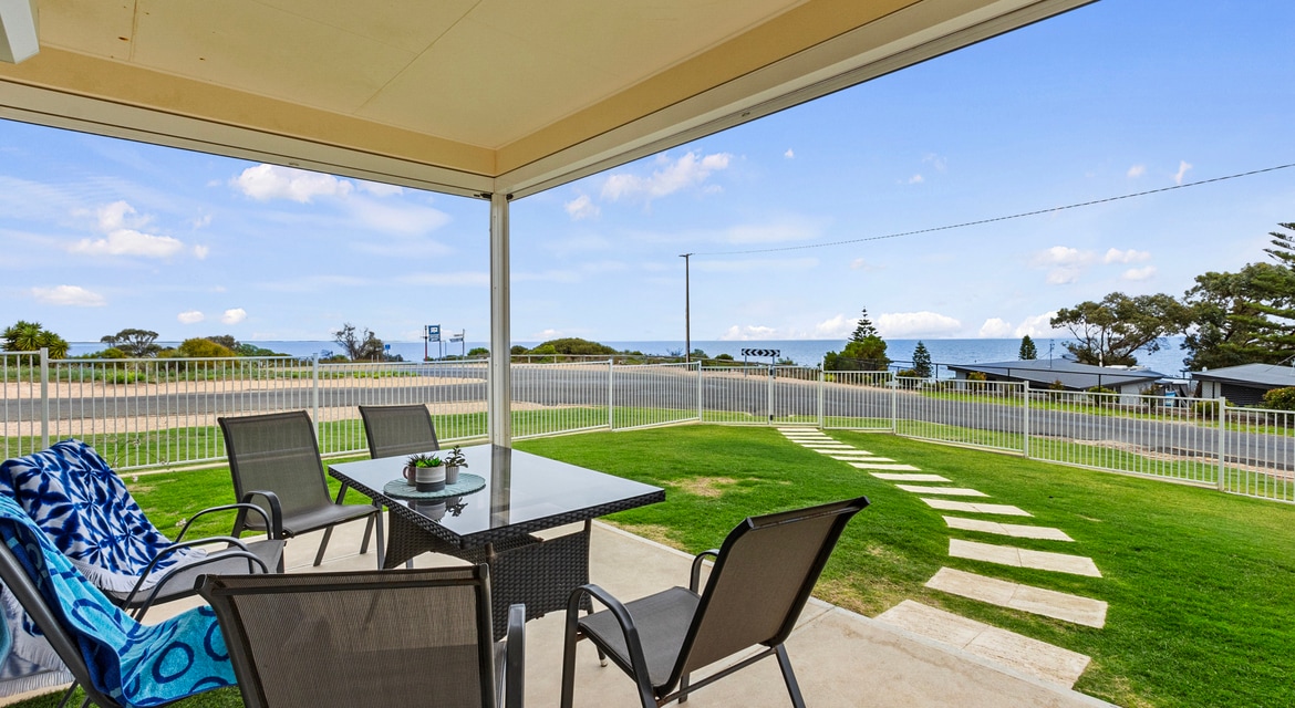 * Dostupna je opcija labave posteljine ili BYO* Novouređeni objekat koji se nalazi na plaži sa skoro 180 stepeni pogleda. Nema puteva između objekta i plaže sa praktičnim pristupom stepeništu do plaže na prednjoj strani. Susjedni objekat, Sandcastles 2 Moonta Bay takođe može biti zanimljiv u zavisnosti od dostupnosti i veličine grupe. Imajte na umu da bezbjednosna kamera u šupi Sandcastles 1 nadzire zadnju stranu objekta u koji se ulazi u objekat i gdje se čuvaju kante za smeće radi bezbjednosti.