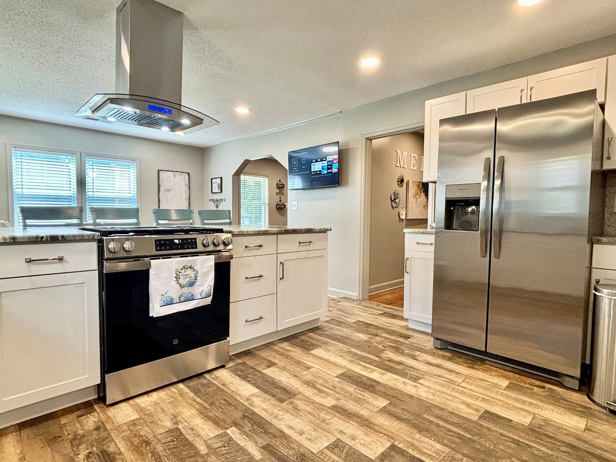 Dobro došli u naše udobno utočište, renovirano od vrha do dna sa dizajnerskom inspiracijom iz HGTV-a Joanna Gaines Fixer Upper. Uživajte u šarmu udobnih soba i opustite se na velikoj terasi. Centralna lokacija za sve što Memfis ima da ponudi. Vaš savršen odmor! ~2 bračna kreveta i 1 kauč na razvlačenje ~Ograđeno dvorište ~Terasa sa roštiljem ~Fiber internet ~Roku televizori ~Igre ~Potpuno opremljena kuhinja ~5 milja do aerodroma ~4 milje do ulice Beale/Downtown/Muzej građanskih prava ~6 milja do Gracelanda ~ 2,5 milje do Liberty Bowl ~Ograđeni parking