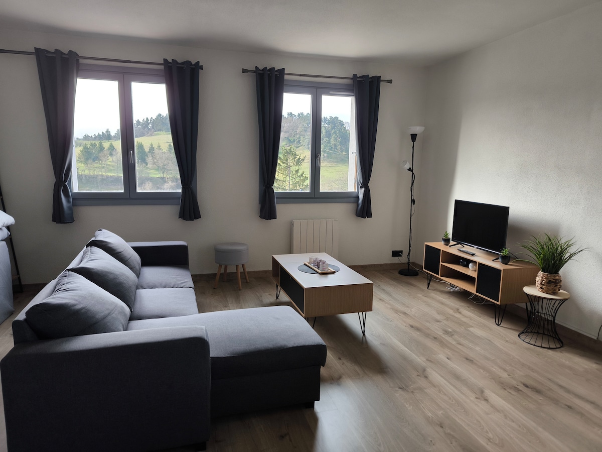 Moderan stan od 45 m2 renoviran u mirnoj i sigurnoj rezidenciji sa dostupnim parking mjestom Potpuno opremljena kuhinja sa rernom, indukcionim šporetom, mikrotalasnom rernom, mašinom za pranje veša, frižiderom, aparatom za kafu, aparatom za kafu, kuvalom Kabriolet kauč sklopivi krevetac je raspoloživ Nalazi se između gornjeg i donjeg grada, u blizini svih sadržaja. Jednostavan pristup udaljen 5 minuta vožnje od autoputa, 30 minuta od Liorana, u blizini vijadukta Garabit 15 minuta, tople poslastice 30 minuta