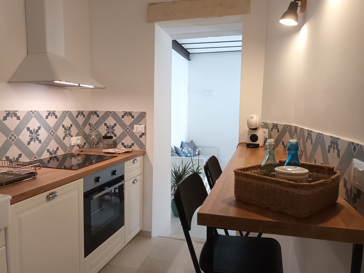 Istorijska rezidencija koja datira iz ranih 1500-ih nalazi se u najstarijem dvoru Corigliano d 'Otranto, uronjeno u istorijski centar. Fino renovirana i namještena mala kuća odlikuje se drvenim plafonom, kao i velikim kaminom. Ima udoban bračni krevet, čajnu kuhinju opremljenu svime što vam treba, frižider, klimatizovano okruženje, TV, dragoceno privatno kupatilo sa velikim tušem, fen za kosu, liniju ljubaznosti.