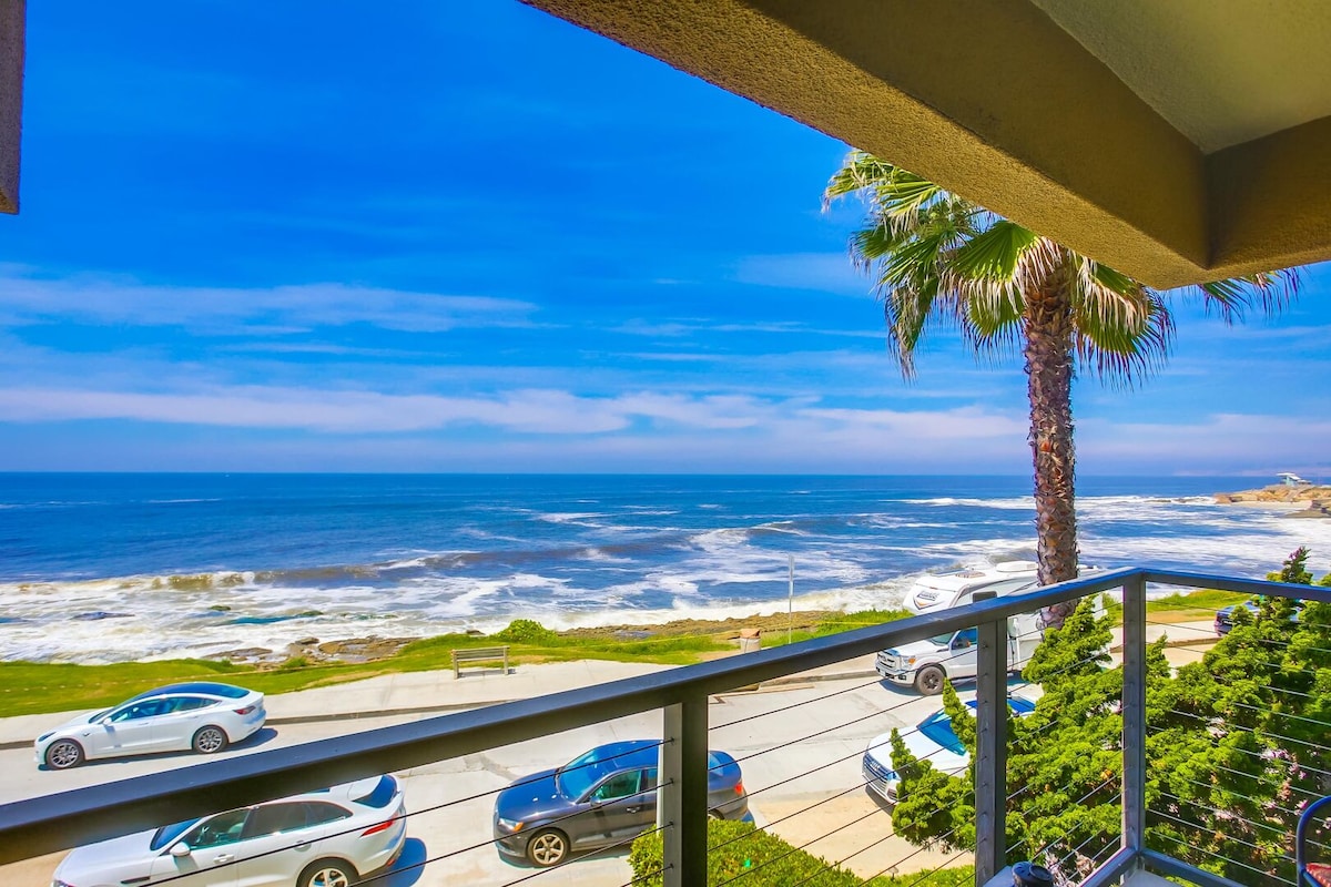 BLAŽENSTVO ISPRED OKEANA U SRCU MISSION BEACHA! Opustite se i opustite u ovom stanu na 3. spratu Penthouse End-Unit Ocean Front sa panoramskim pogledom na Tihi okean sa pogledom na šetalište na plaži Mission Beach! Udaljen između parka Belmont i Kristalnog gata u SRCU Mišn Biča, uključujući restorane, barove, noćni život, kafiće i još mnogo toga! Uživajte u jelima na privatnom balkonu i posmatranju ljudi sa Pacifikom kao dvorištem.