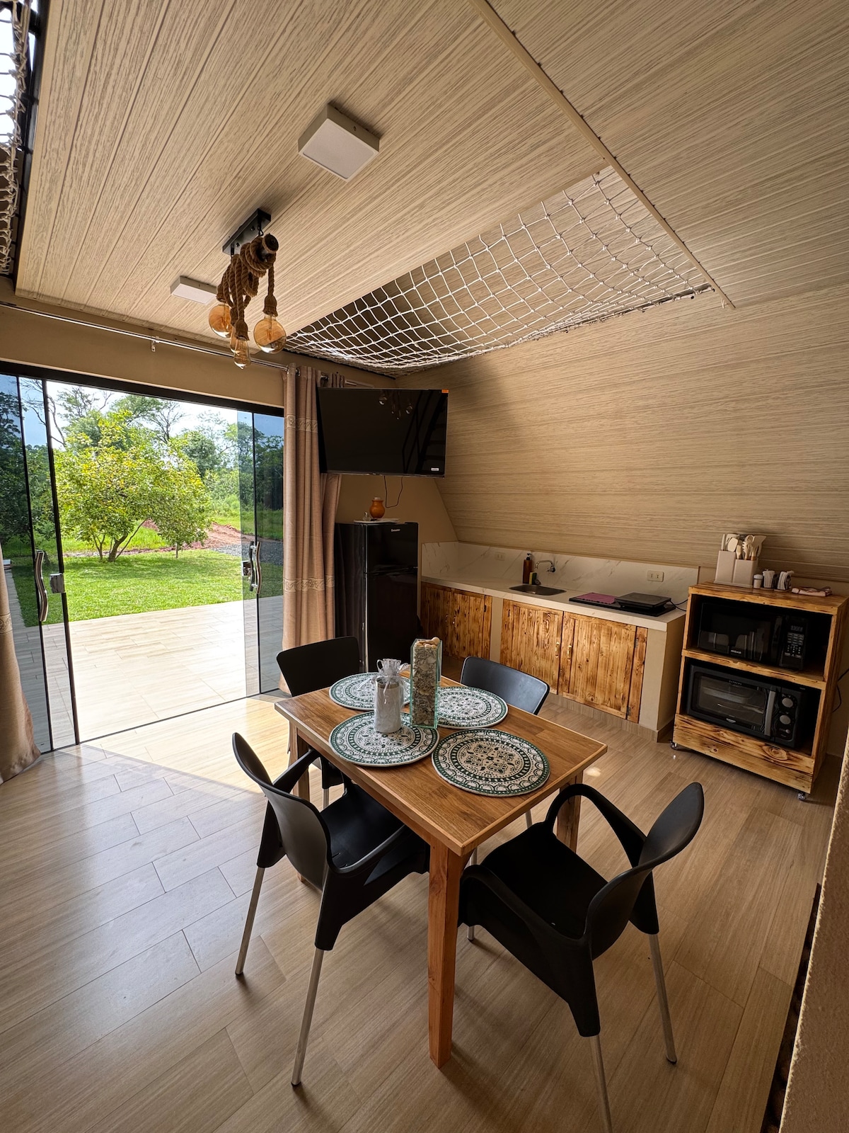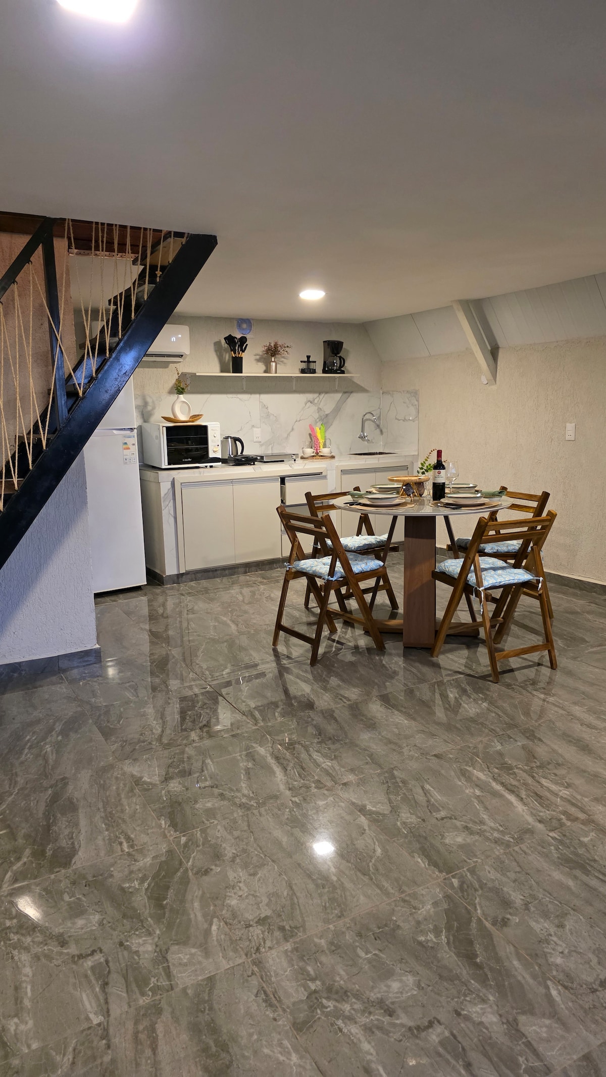 ➡️ Uživajte u jedinstvenom doživljaju u ovoj planinskoj kući u obliku slova A koja spaja prirodni stil sa modernom udobnošću. Ima udobnu dnevnu sobu, potpuno opremljenu kuhinju i trpezariju u kojoj možete da provodite posebne trenutke s drugima. Osim prijatne atmosfere u zatvorenom prostoru, uživajte u otvorenom bazenu u kojem se ogledaju neverovatne boje paragvajskog zalaska sunca i u prostranom quinchu (kuhinji na otvorenom) sa roštiljem. Okružen prirodom, to je savršeno utočište za opuštanje i punjenje baterija🌿 Sve što vam treba za savršen odmor✨️