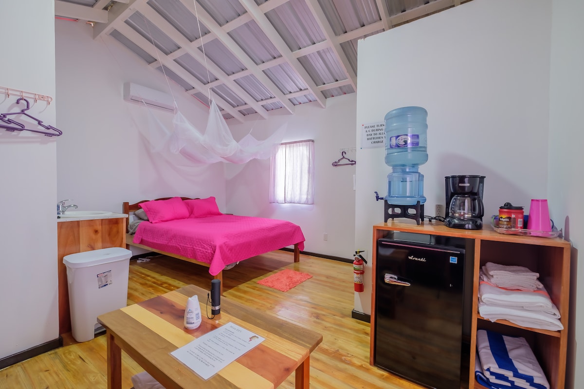 Odmorite se i opustite u ovoj mirnoj oazi. Kornjača Casita ima ekološki prihvatljivu veliku sobu sa bračnim krevetom i futonom pune veličine, filtriranom vodom, kafom, mini frižiderom i klima-uređajem kako biste poboljšali udobnost u vrućini Kariba. The casita is within walk away to the beautiful Secret Beach waters, bars and restaurants. U našim smještajima Spoonbill, Gecko i Iguana Casita potražite dodatne smještaje.