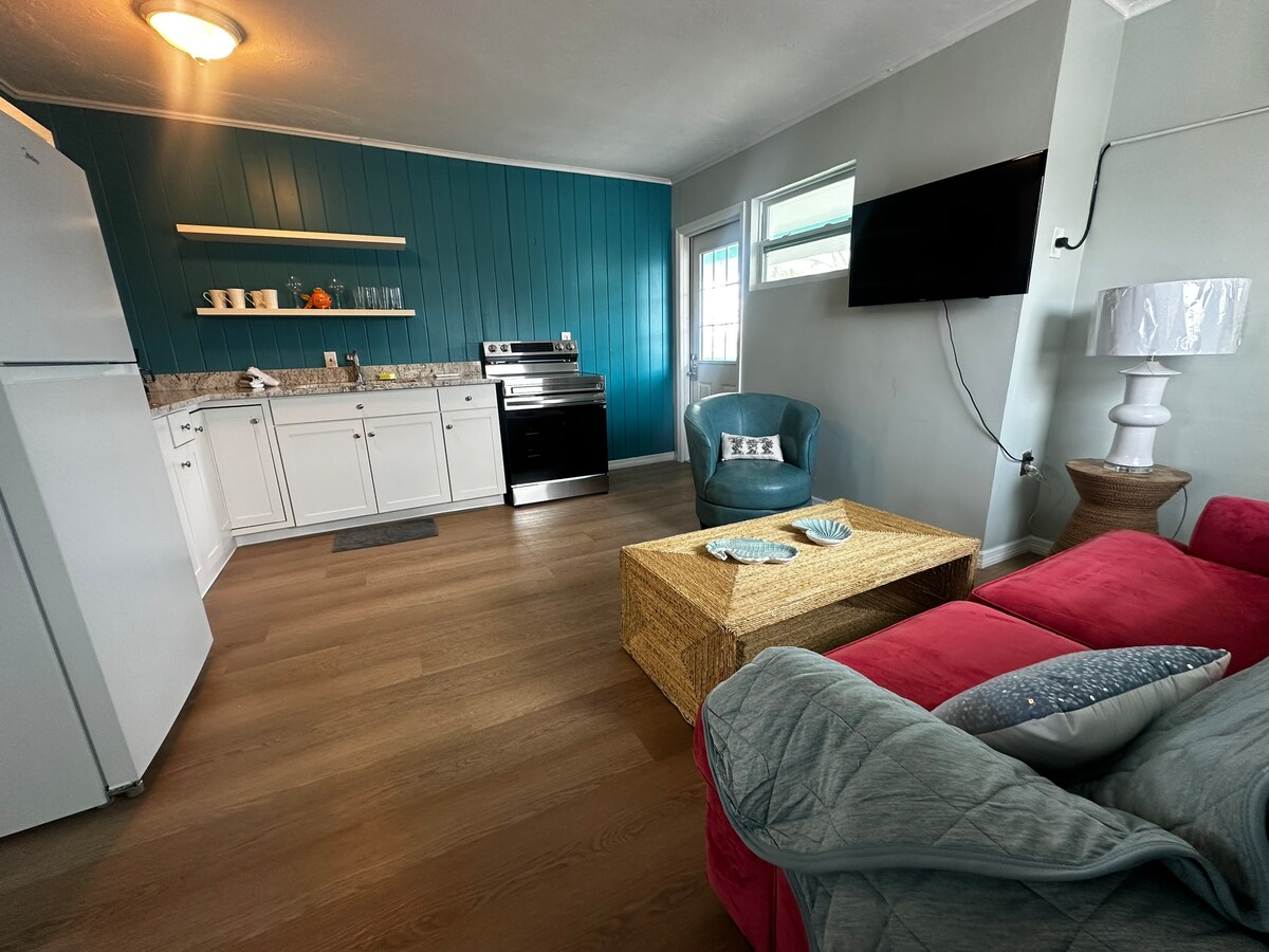 ONE SHELL COVE on Anna Maria Island has been fully remodeled after Hurricanes Helene and Milton. Predivan studio tlocrt sa sjajnom kuhinjom. Prekrasan pogled na talase i plažu ispred vašeg prozora. Uzmite peškir, napravite nekoliko koraka i već ste na plaži. Pijesak dolazi do vaših vrata u ovoj prizemnoj jedinici. Nevjerovatna lokacija Prošetajte do nekih restorana Besplatna kolica idu gore-dole po ostrvu Iznajmite kajake i daske za veslanje i uživajte na plaži