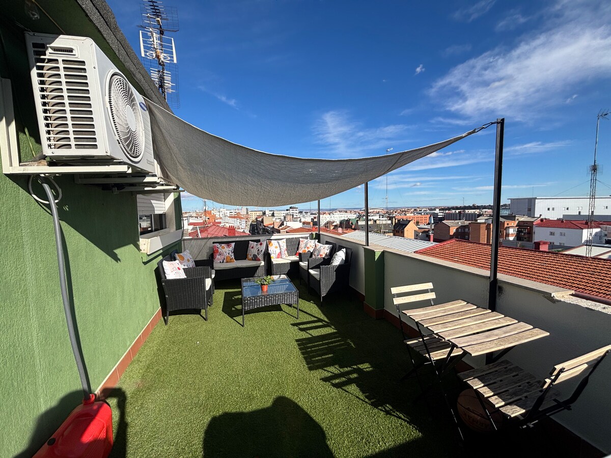 Si queréis estancias a largo plazo mejor preguntar directamente. Moderno ático de 55m en el centro de Alcalá con chimenea y 30m de terraza. Perfecto para familias, parejas y viaje de trabajo. Bus/taxi a Madrid y aeropuerto a 50 metros. El parking es comunitario y se encuentra a escasos 200m del alojamiento. Es necesario acceder primero al apartamento para recoger el mando del parking y luego aparcar. Los carritos de bebé se pueden dejar en la sala de contadores durante la estancia.