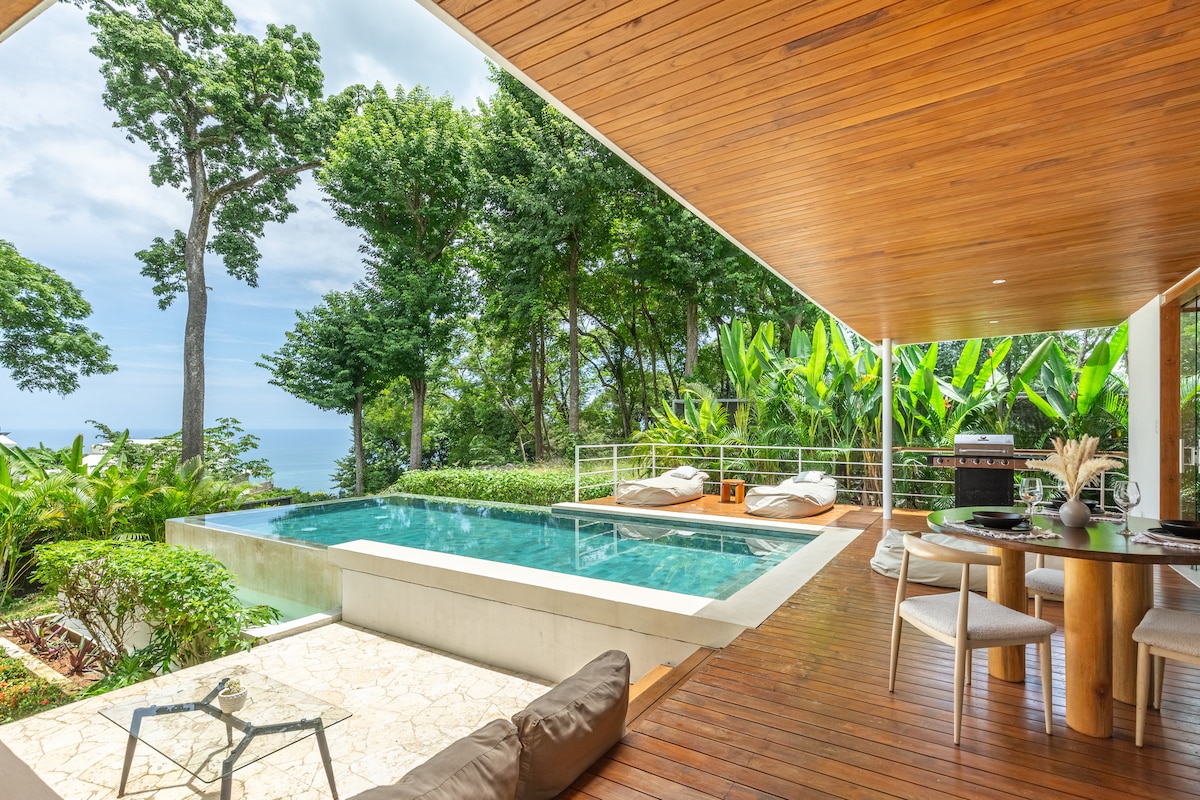 Coastal Vistas Casa | Santa Teresa Coast Views is a private, high-end luxury suite in Mal País with panoramic Santa Teresa coastline and jungle valley views. Designed for romance or focused solo stays, it features a plunge pool, gourmet kitchen, and seamless indoor-outdoor living in a secure, tranquil setting. Wake to birds and wildlife, then reach beaches, surf, and dining in minutes—ideal for couples or a solo digital nomad seeking privacy and inspiration.