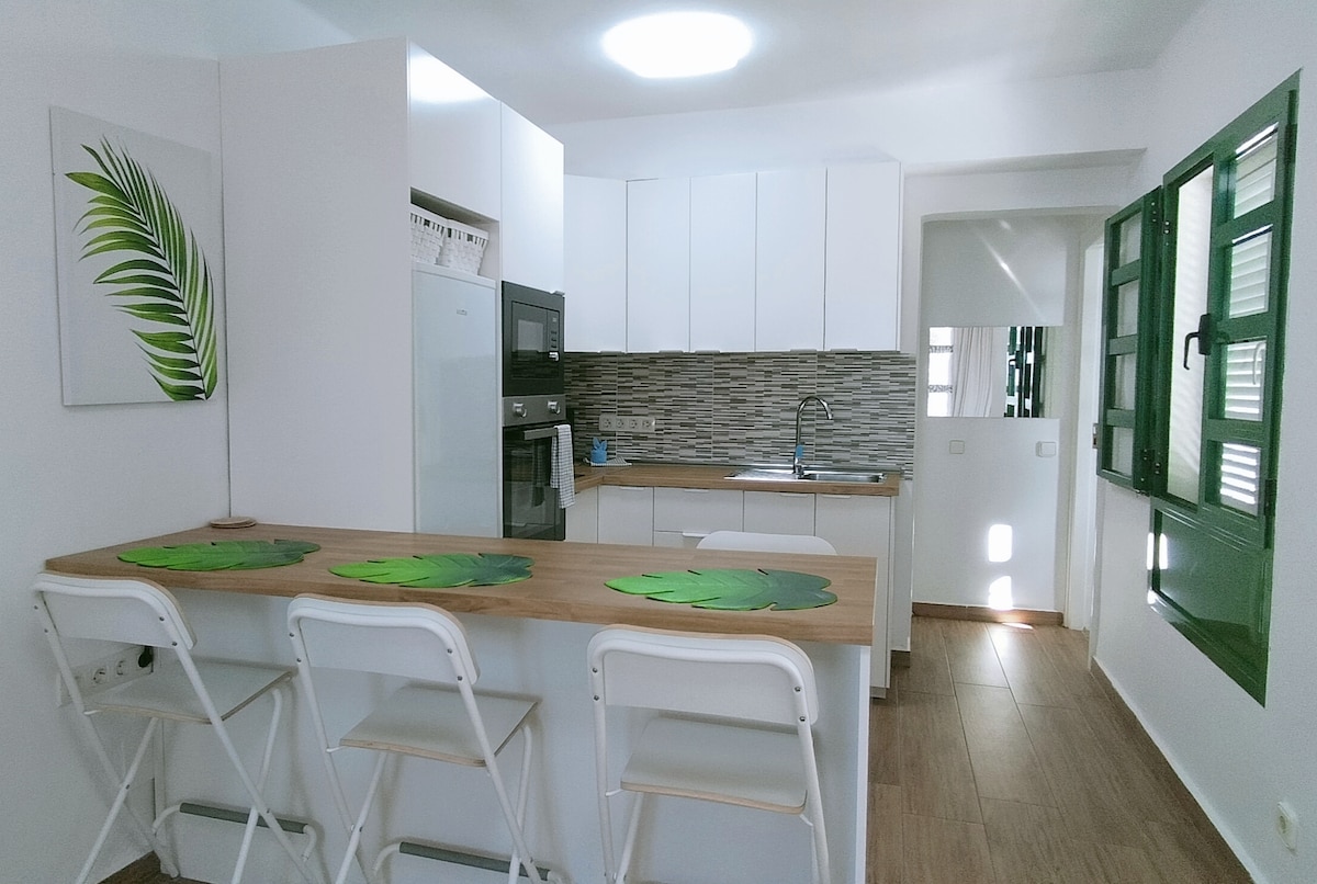 Prekrasan potpuno novi stan u malom, potpuno renoviranom, čistom i dobro održavanom malom kompleksu, sa velikim zajedničkim bazenom i tropskim palmama. Nepobjediva lokacija smještaja. Sa jedne strane, nalazi se u samom srcu Kosta Teguise, na minut od plaže, nekoliko metara od Pueblo Marinero, pored parkova, restorana, prodavnica i besplatnog parkinga. S druge strane, potpuni su pristup pješačkoj ulici, mir i tišina.