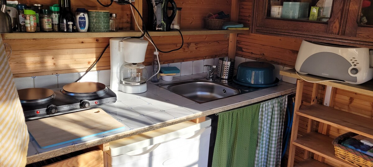 Dobro došli u kamp prikolicu P'tite Ferme! Naći ćete mir i svu udobnost koja vam je potrebna: udoban prostor usred zelenila: 1 dobar krevet (120x180), 1 čajna kuhinja, 1 prostor za sjedenje u uglu. Suvi toaleti, tuševi na fito bazenu na otvorenom. Odličan intimni smeštaj za romantični vikend! Savršeno za opuštajuće samo za opuštanje! Nudimo doručak i vegetarijansku večeru (organsku, lokalnu i sezonsku) ili suhomesnate proizvode. Nema grijanja.