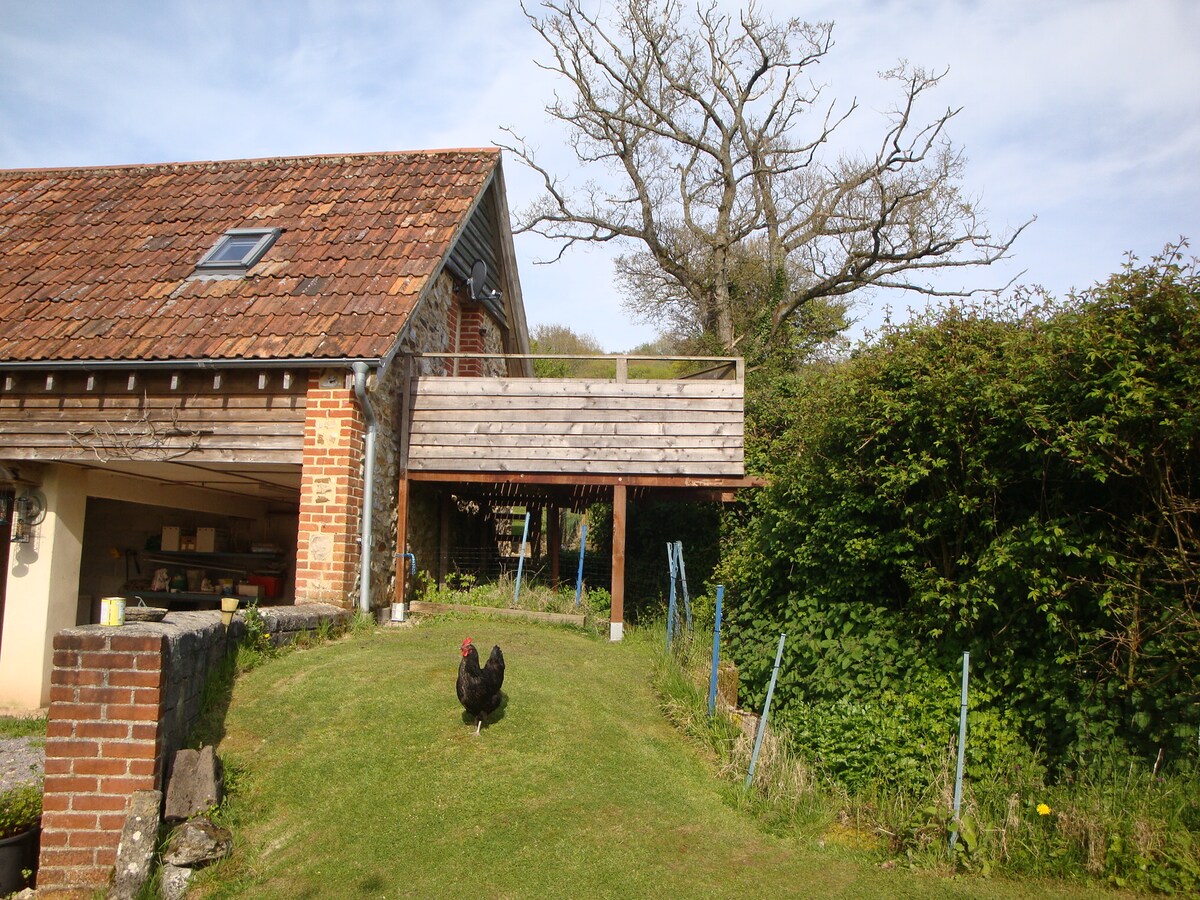 Udoban samostojeći aneks za dvoje u malom selu u blizini Axminstera i nadohvat ruke od obale Jure, Lajm Regisa, Šarmuta, Bridporta, Honitona, Sidmuta i prelepih šetnji na selu. Odličan seoski pab 5 minuta hoda. Uključen je kontinentalni doručak! Aneks ima zasebnu tuš-kabinu, duplu garderobu, bračni krevet i prostor za pripremu hrane. Privatna terasa sa stolom i stolicama za doručak ili večeru na otvorenom i isključivo korišćenje male letnje kuće sa pogledom na dolinu sekire.