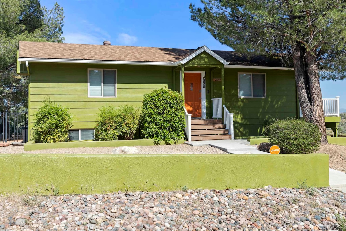 Dobro došli u ovaj pažljivo ažurirani boho/dom inspirisan sredinom vijeka sa pogledom na dolinu Verde i šire. Iako je ovaj prostrani smještaj savršen privatni smještaj za porodice, osobe koje rade na daljinu ili bilo koga ko posjećuje dolinu Verde, njegova lokacija olakšava kretanje. Samo vi ste: 20 minuta do planinarskih i biciklističkih staza svjetske klase u Zapadnoj Sedoni 8 minuta do restorana i prostorija za degustaciju vina u Starom gradu 20 minuta do istorijskog Džeroma 15 minuta do rijeke Verde