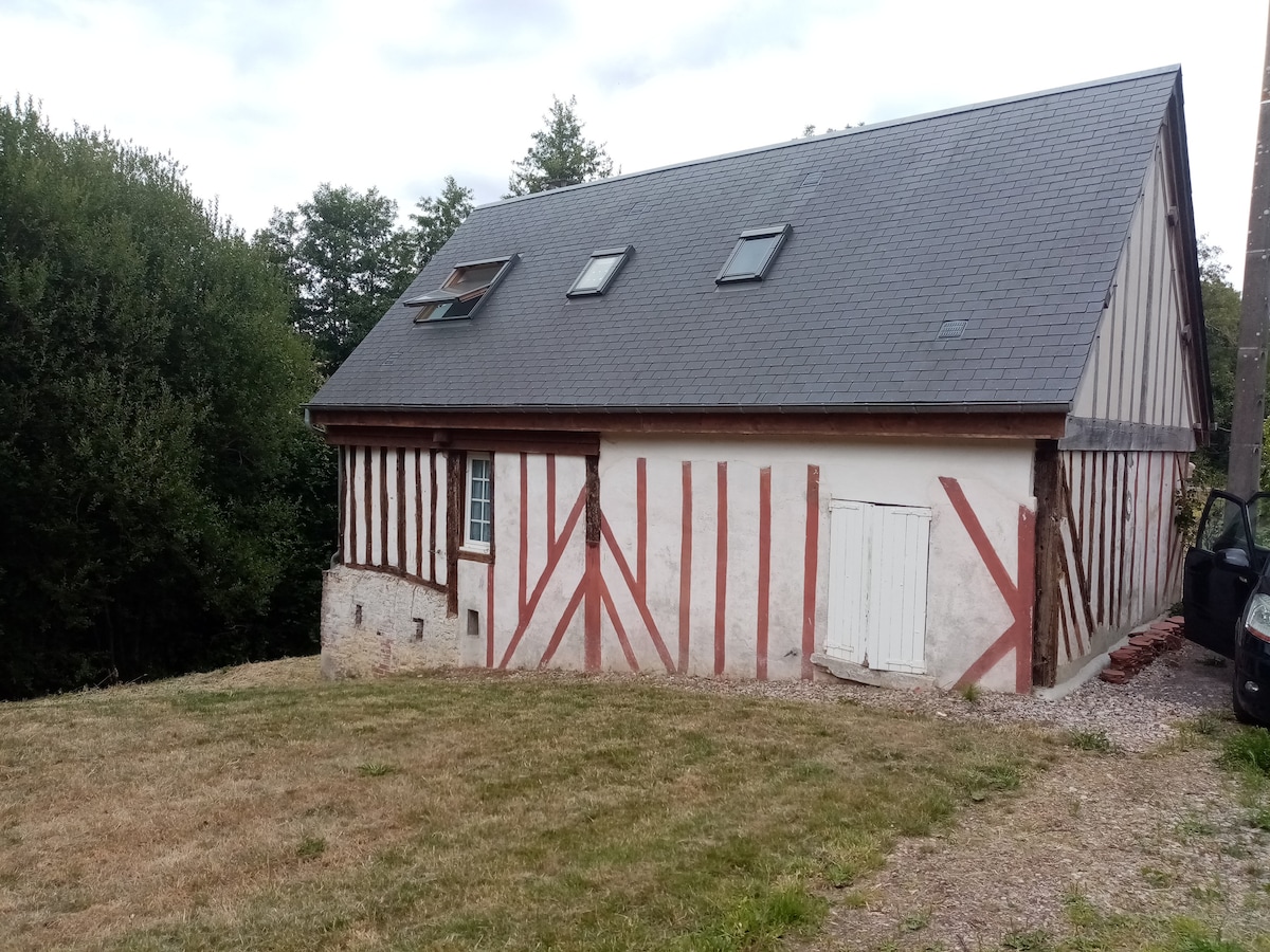 Na selu , smještena u brdovitom parku, ova kuća u Normandiji se sastoji od 2 spavaće sobe ( 1 krevet u glavnom apartmanu 180 cm sa kupatilom i privatnim toaletom, druge spavaće sobe sa balkonom ( krevet 160 ) i centralne sobe u kojoj se nalazi kauč na razvlačenje od 140 cm. Tuš kabina i WC su takođe u prizemlju. Potpuno opremljena kuhinja. Kao i 2 spoljne terase sa baštenskim namještajem. Hidromasažna kada je dostupna kao opcija.