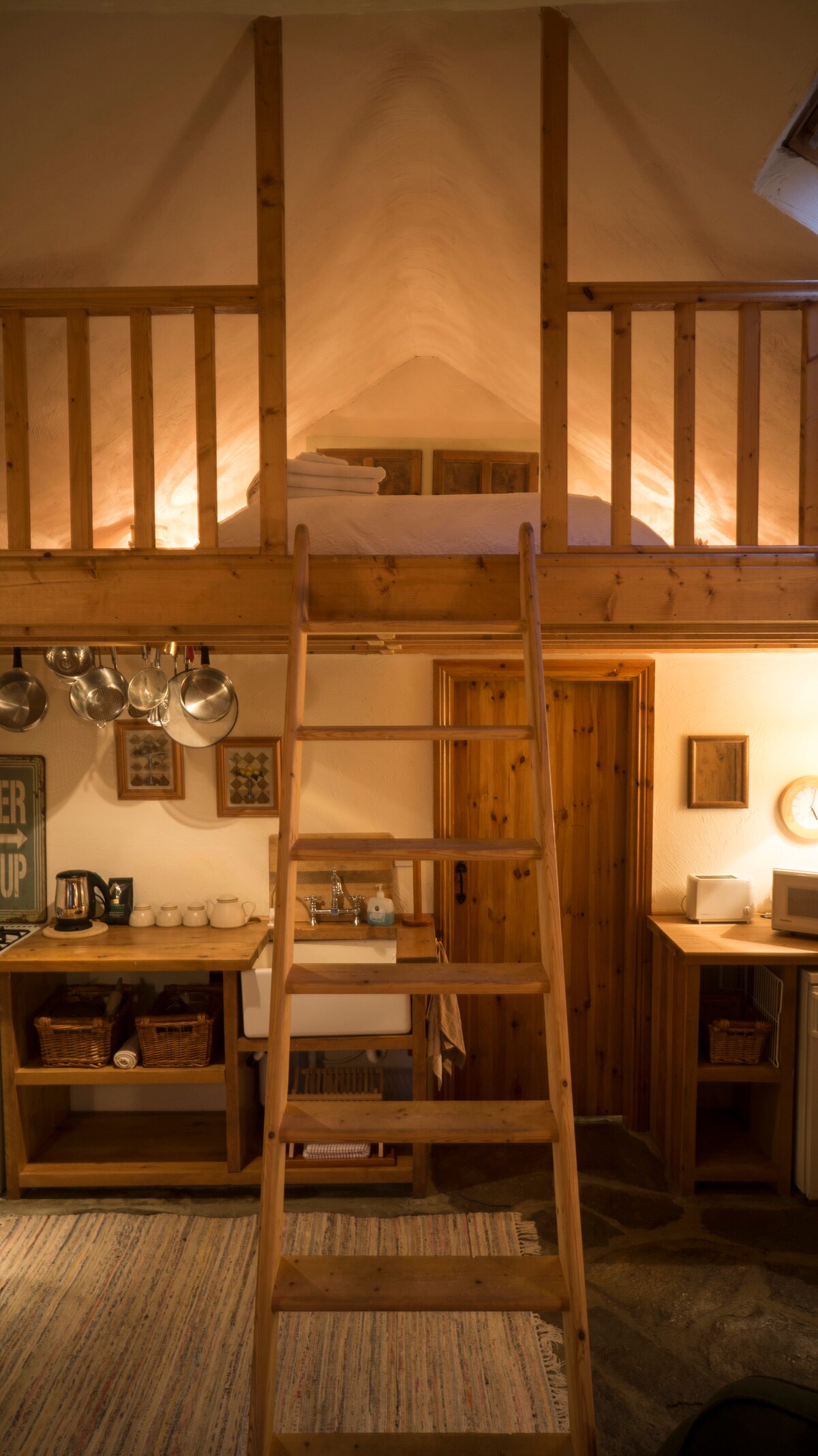 ‘Eagles Rest’ is a mezzanine style loft in a renovated ‘milking parlour ‘dating back to the early 1900’s. It is open plan with kitchenette(Please note no cooker or hob, see list of amenities)living area,power shower bathroom, bedroom with a super-king size bed, Breakfast is not included in the rate but is available on request, served in Paudie and Anne’s Bed and Breakfast To see our other accommodations,please click on host photo of Paudie and Anne,scroll down the page to see our 5 listings
