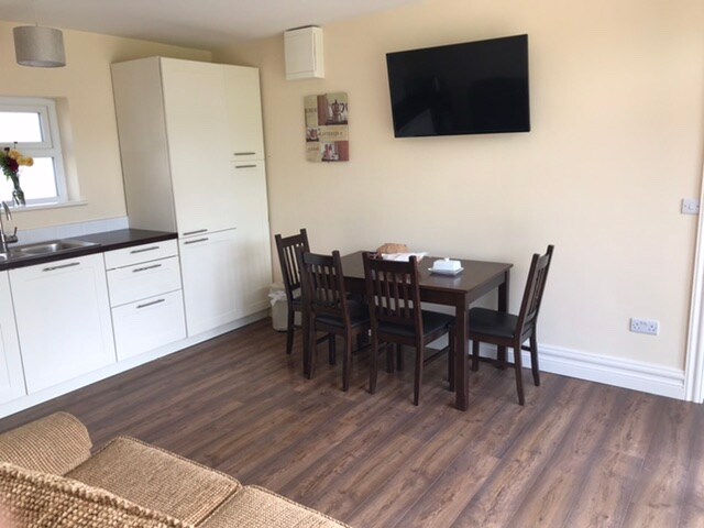 Beautiful custom built, cosy chalet in a peaceful, tranquil country setting - away from city bustle - only 5 mins from Corrandulla, Claregalway village and Annaghdown Pier. Just 20 mins from Galway City - the gateway to Connemara, Aran Islands, the Burren Region, Wild Atlantic Way & beaches to the West. Just 15 mins from the M17 motorway. In the morning sun, listen to the birdsong. In evening, watch the sun disappear behind the trees. 5 mins walk to local Gastro Pub. Public transport also.