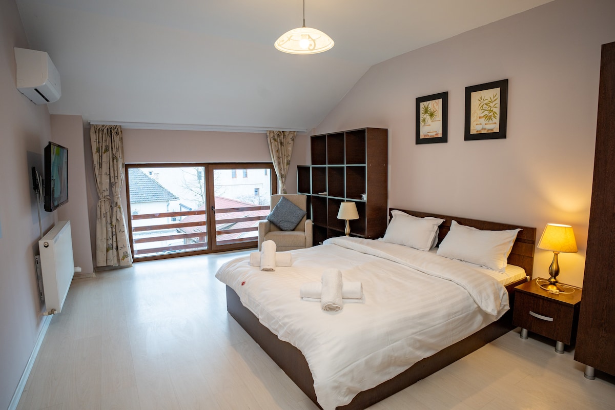 Bucură-te de un apartament modern și spațios, situat chiar în inima Brașovului, pe strada Republicii. Include doua dormitoare confortabile, living luminos și bucatarie complet utilata. Ideal pentru cupluri sau familii care vor să fie la câțiva pași de Piața Sfatului, restaurante, cafenele și principalele atracții turistice. Locație excelentă, liniște și confort în centrul vechi.