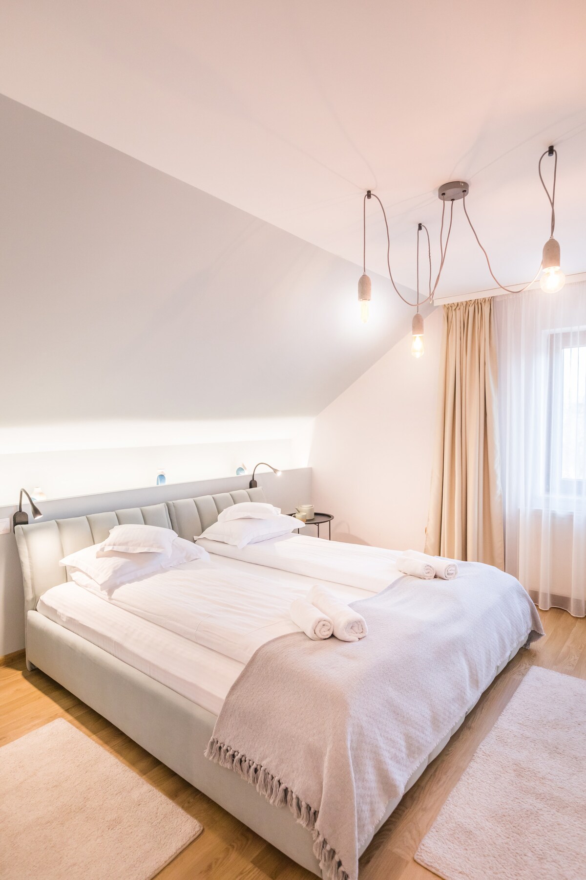Budite prebačeni u prošle dane na našem s ljubavlju obnovljenom tradicionalnom saksonskom tavanu i uživajte u savršenom pogledu na planinu Tampa i susjedne krovove na jedinstvenom mjestu punom karaktera i romantike. Imaćete autentičan lokalni doživljaj boravka u privatnoj gostinjskoj kući naše porodice koja se nalazi u samom srcu grada u jednoj od vrhunskih istorijskih zgrada Brašova. Uključeno je i: besplatan parking u sklopu objekta, bar za doručak, prostrani salon sa terasom na krovu i privatni fitnes studio.