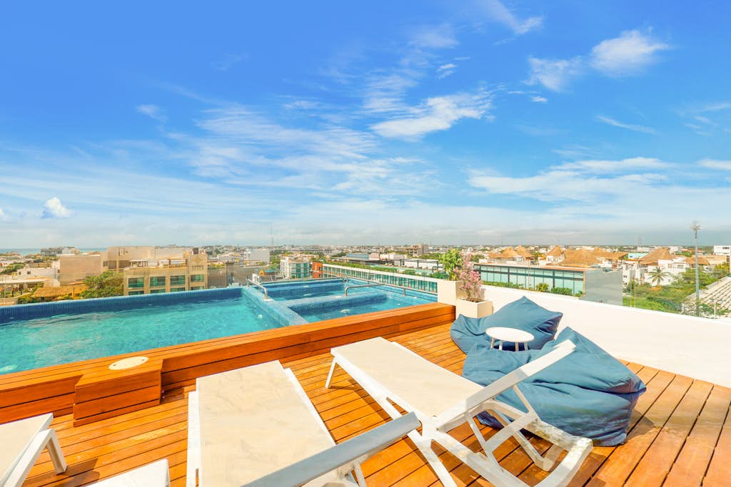 Luxury condo in prime Playa del Carmen, just steps from Mamitas Beach and a short walk to Quinta Avenida. Designed for comfort and refined coastal living, the residence features bright interiors, high-end finishes, a spa-style rain shower, private balcony with tranquil mangrove views, and fast fiber Wi-Fi. Guests enjoy an ocean-view rooftop with pool, hot tubs, and gym, plus 24/7 security and self check-in—an elegant retreat near top dining, shopping, culture, and nightlife.