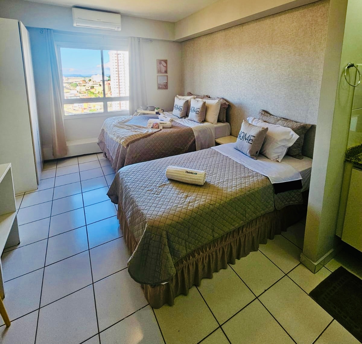 Aconchegante, privilegovana lokacija. Mirna regija, jednostavan pristup, 4 minute hoda od prodavnice Ribeirão, 1 kupatilo, dnevna soba, opremljena kuhinja/prostor za usluge, klima-uređaj, 1 besplatno sjedište, pogledajte vrijednost za korišćenje drugog prostora, Wi-Fi internet - da ne primate posjete stanu