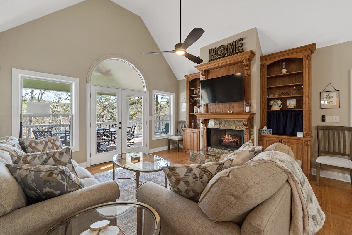Koliba uz obalu jezera Oconee +ognjište +pristanište+POGLED