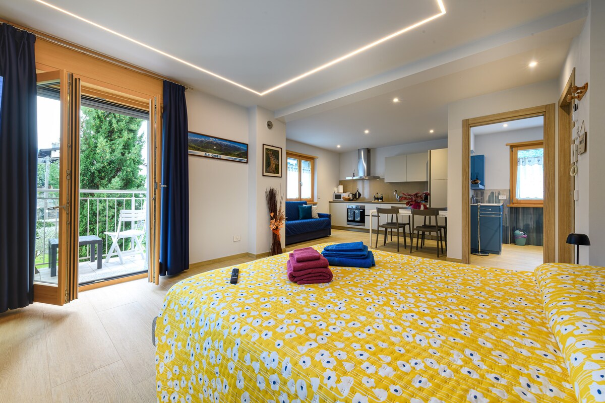 Nedavno renoviran stan sa svime što je potrebno za kuhinju, kupatilo i sobe, velika terasa sa prelepim pogledom na okolne planine i park Adamello, samo nekoliko metara od glavnog puta, okružen barovima, picerije, lepotnim i velnes centrima i prodavnicama svih vrsta, autobuska stanica udaljena 4 minuta hoda, besplatan parking svuda oko trga, usred glavnih alpskih prolaza Lombardija i Trentino Alto Adige, ekologija-sport-kultura-
