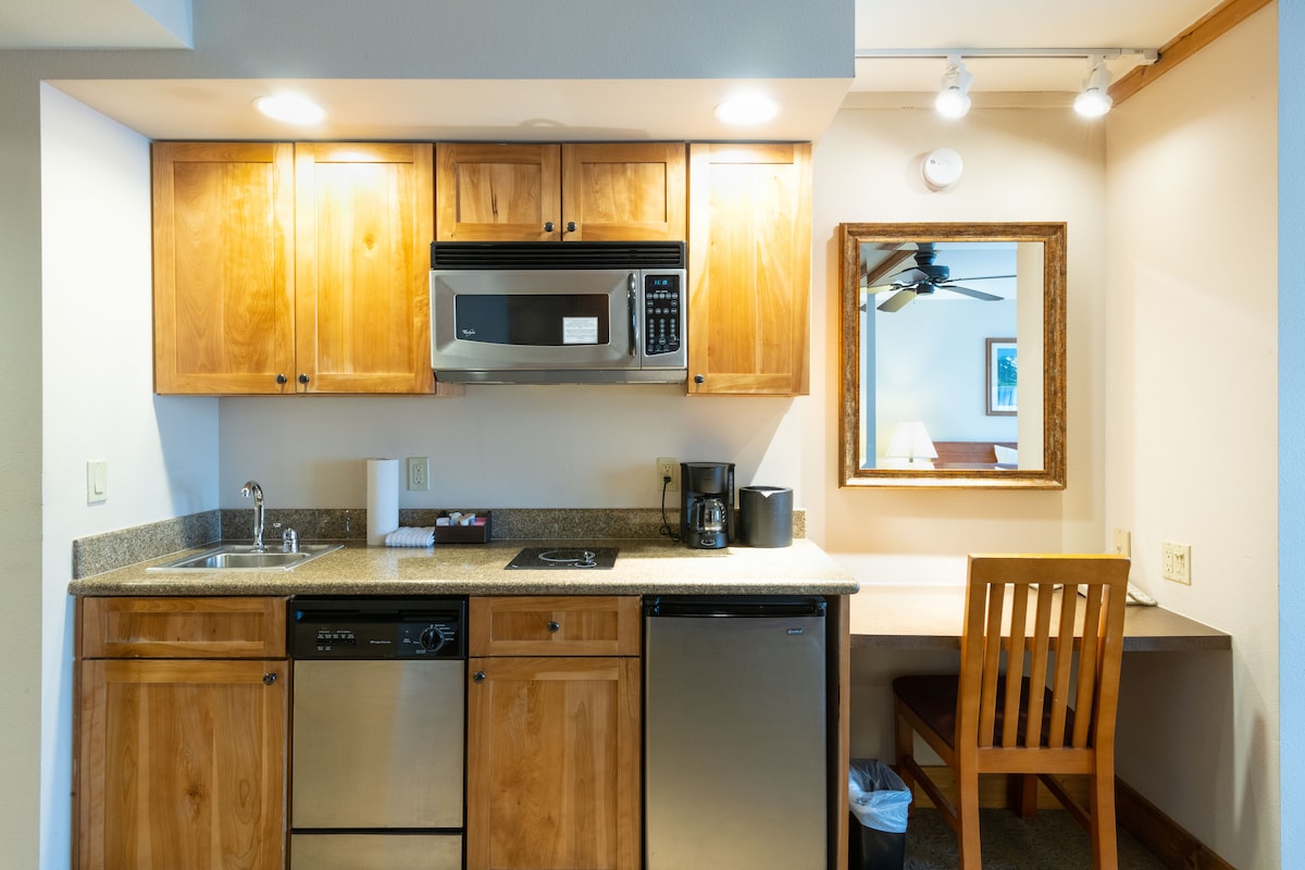 Smestite se nakon cjelodnevnog skijanja ili pešačenja u našem studiju Grand Lodge prikladnom za kućne ljubimce! Sadrži dva bračna kreveta, modernu čajnu kuhinju, brzi Wi-Fi i pametni TV. Uronite u sadržaje Grand Lodgea u sklopu objekta: hidromasažnu kadu, bazen, teretanu i saunu. Opustite se pored kamina u predvorju. Bićete savršeno smješteni na Mountaineer Squareu: nekoliko koraka od liftova i pored besplatnog prevoza koji vas vodi do Elk Ave za 10 minuta. Prihvatamo pse uz plaćanje naknade za kućne ljubimce u iznosu od 130 USD. Najviše dva psa.