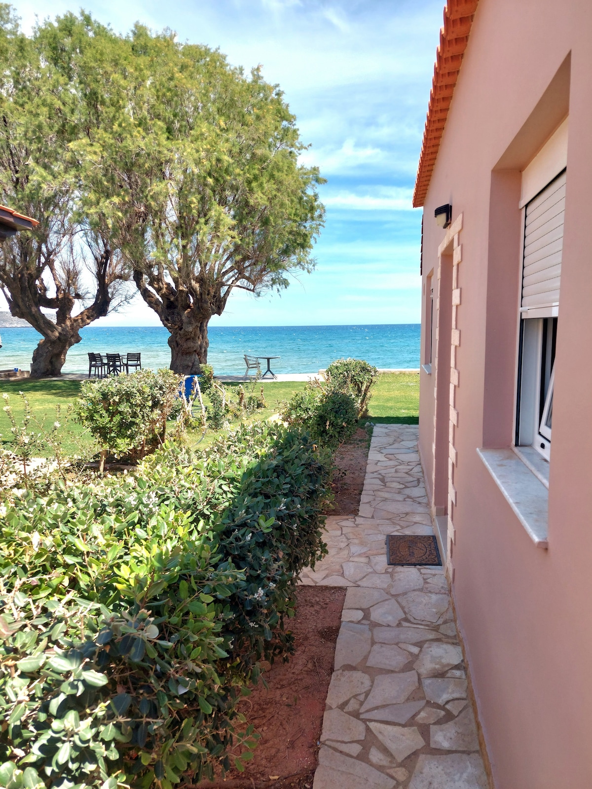 Naša renovirana kuća je idealno mesto za uživanje u kretskom gostoprimstvu. Nalazi se na 20 koraka od mirne plaže Agios Panteleimonas. Dve kratke staze sa obe strane kuće vode do obližnjih plaža. Na desnoj strani nalazi se čuvena plaža Vulisma sa kristalno bistrim morem i zlatnim peskom, a na levoj hladna plaža za opuštanje i meditaciju. Do supermarketa, kafana, kafića ili barova s bazenom možete doći pješice u roku od 5 minuta. Agios Nikolaos je udaljen 10 minuta automobilom.