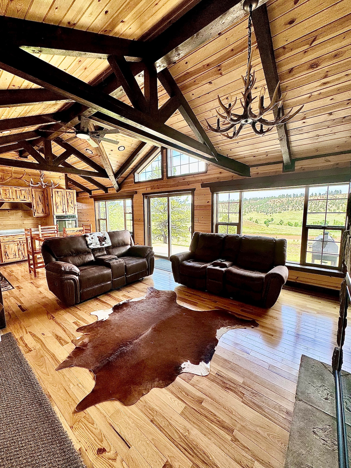 Doživite otvoreni planinski lanac Vajominga! Ova udobna brvnara u nevjerovatno lijepom okruženju savršena je za grupe. Vrlo privatno i tiho. Ponesite svoje ORV-ove i motorne sanke. Nekoliko minuta vožnje od šumskih staza Blek Hils. Nenadmašno posmatranje zvijezda, planinske livade i butte manje od sat vremena od Đavoljeg tornja, Spearfiša, Dedvuda i Sturgisa. Malo više od sat vremena do Rašmora. 20 minuta od Sandensa sa pravim kaubojskim pojilištima i zapadnom istorijom. Vaš dom u blizini! Nema naknade ZA čišćenje!