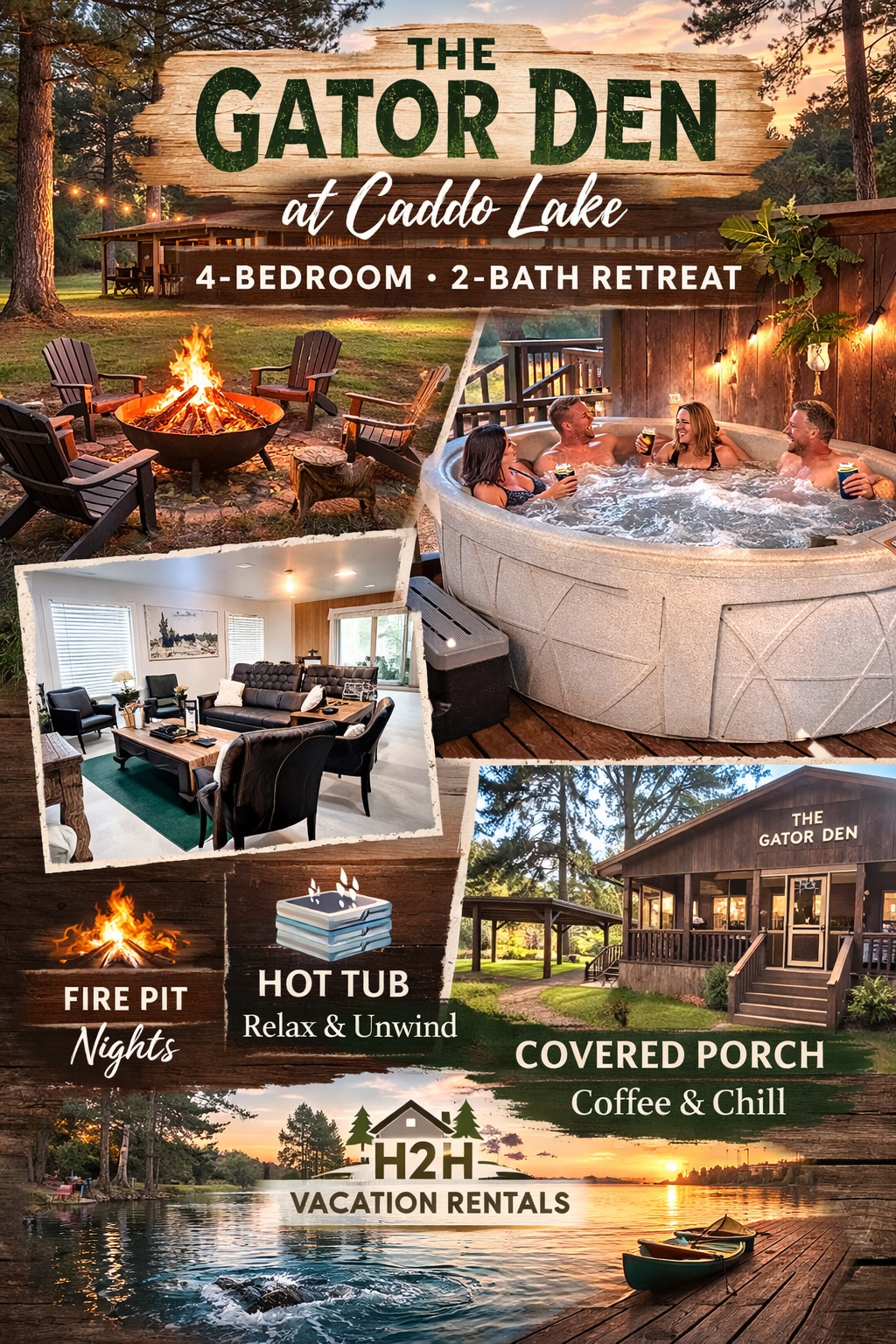 Pobjegnite u spokoj u našoj privatnoj brvnari s 2 spavaće sobe, smještenoj na jezeru Kaddo s pogledom koji oduzima dah. Opustite se na prostranoj terasi u hidromasažnoj kadi ili se zabavite u kuhinji na otvorenom dok uživate u blagim zvukovima prirode. Unutra, udoban enterijer se može pohvaliti potpuno opremljenom kuhinjom i udobnim rasporedom spavanja za miran odmor. Bez obzira na to da li tražite romantični odmor ili porodičnu avanturu, ova kuća na jezeru nudi vrhunski bijeg od svakodnevnice.