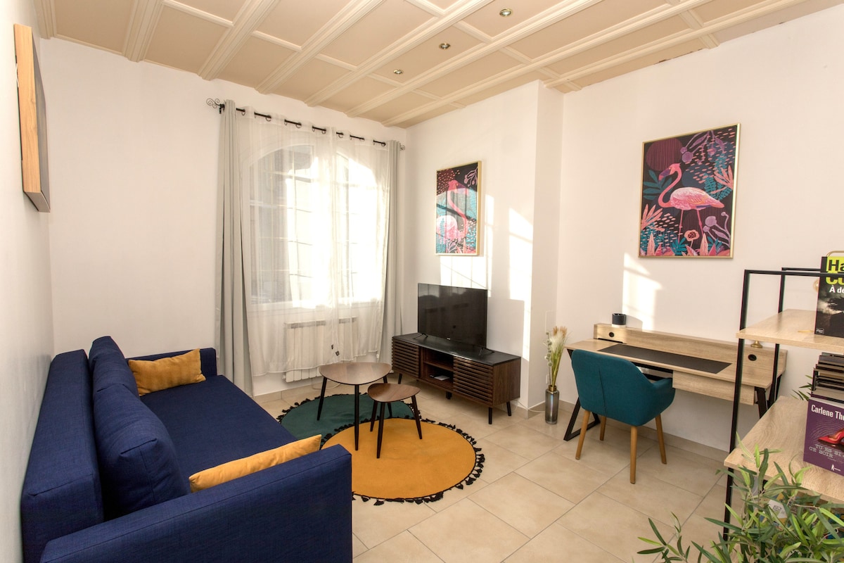 Mali studio (15 m2) pričvršćen za našu kuću sa nezavisnim pristupom i malom terasom sa pogledom na baštu. - Direktan autobus do stanice ili univerziteta, besplatan parking - Na 50 m, čuvana plaža Saint-Nazaire (najslađi sa svojim svetionikom) i bar na plaži tokom leta, staza carinika. Na 500 m, pekara, apoteka, prodavnica, cvjećara, frizera, mesara i kafića.