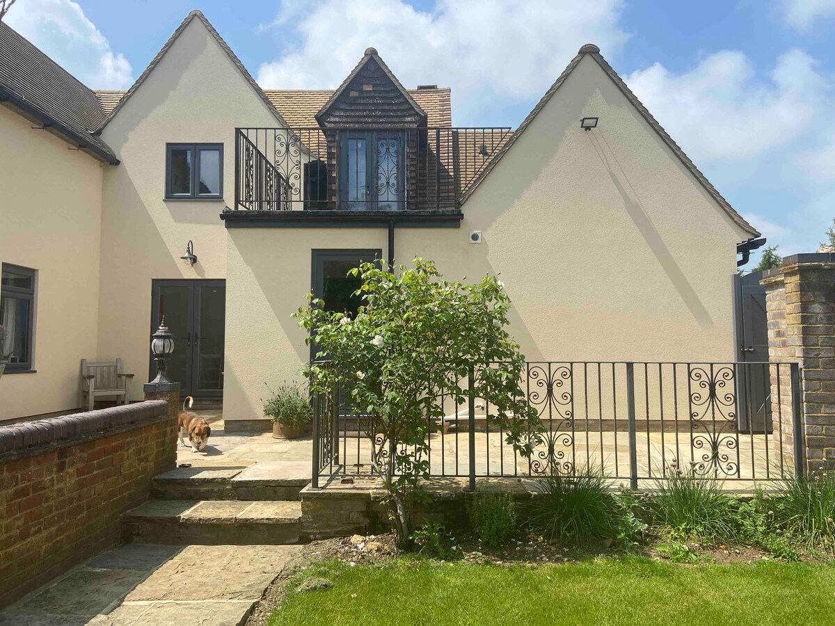 Nedavno uređena! Zadivljujuća soba u ambaru (sa privatnim ulazom) koja se nalazi pored naše prelepe porodične kuće - zgrade iz 18. veka koja se nudi u kategoriji 2. Udoban i savremeni smještaj, sa fantastičnim bračnim krevetom, luksuznom posteljinom i predivnim spojenim kupatilom. Nespresso aparat, frižider, čajnik i čajnik. Smešten u slikovitom selu Overthorpe. Sef za ključeve je opcija ako domaćini nisu u blizini ili ako biste radije samostalni dolazak