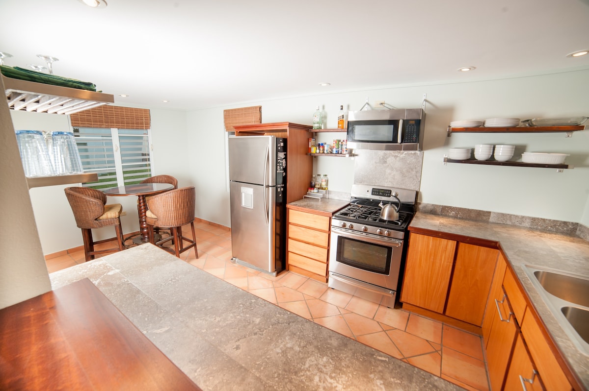 Nakon dana provedenog u avanturi, ovo je savršeno mjesto za dobar i udoban noćni odmor. Nema dosadnih/bučnih komšija. Kratkih 10 minuta vožnje do centra Rinkona i poznatih plaža. Ovaj jedan sprat niz stepenice, zadnja soba na nivou unutrašnjeg dvorišta ima privatni ulaz/privatno kupatilo. Opremljen je sa 2 bračna kreveta, klima-uređajem i 2 plafonska ventilatora. Mini frižider, mikrotalasna pećnica i aparat za kafu/osnovnu opremu. Wi-Fi, Roku Smart TV sa dodatnim lokalnim vazdušnim kanalima.